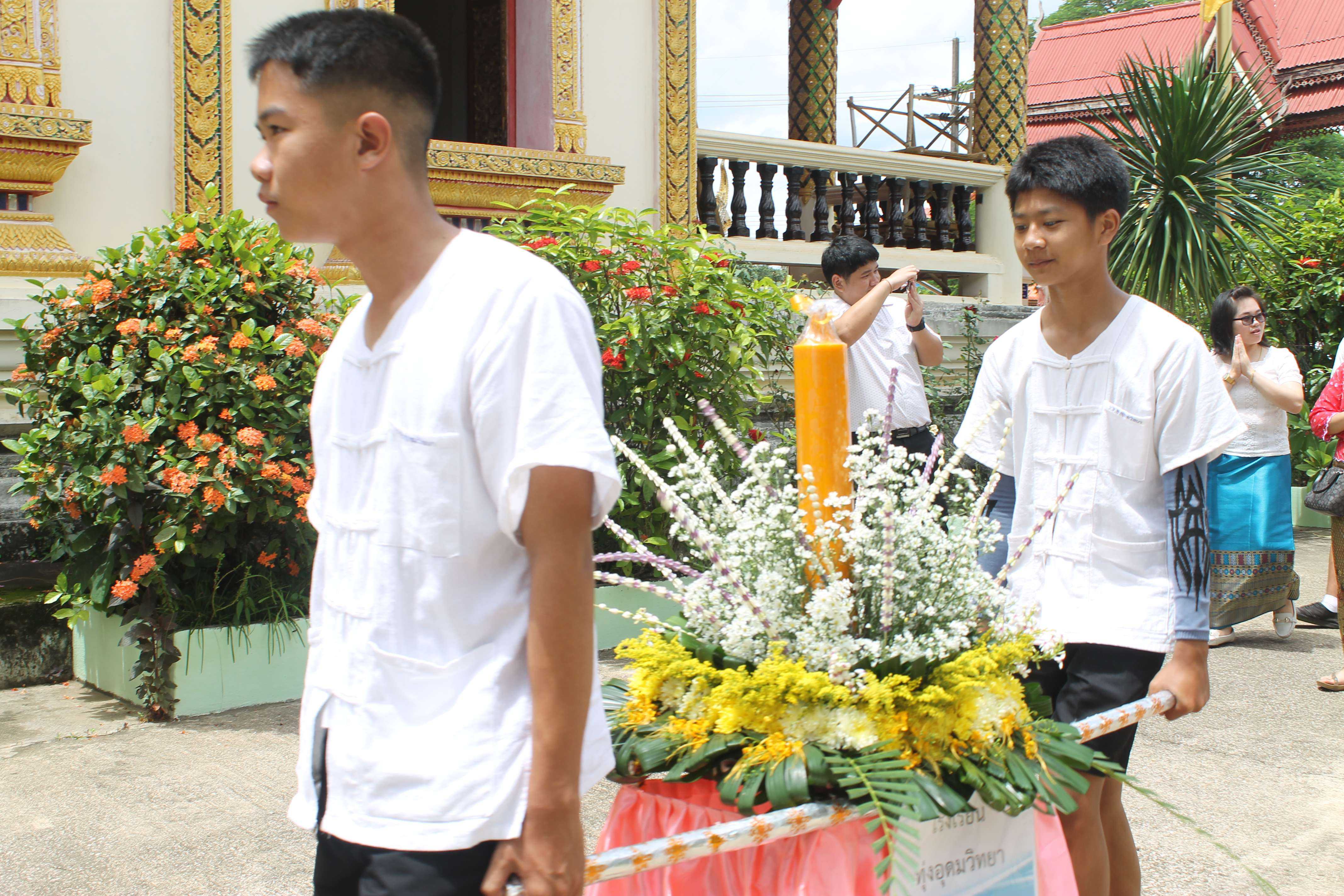 โรงเรียนทุ่งอุดมวิทยาได้จัดกิจกรรมถวายเทียนพรรษา โดย นายชวภณ เปี้ยอุ๊ด ตำแหน่ง ครู วิทยะฐานะ ชำนาญการพิเศษ เป็นประธาน พร้อมด้วยคณะครูและนักเรียนเข้าร่วมกิจกรรมถวายเทียน พรรษา โดยมีวัตถุประสงค์เพื่อให้นักเรียนได้ตระหนักถึงวันสำคัญทางศาสนาซึ่งเป็นวันที่สมเด็จพระ สัมมาสัมพุทธเจ้า ทรงบัญญัติให้พระภิกษุสงฆ์จำพรรษาเป็นเวลา ๓ เดือนในฤดูฝน ระหว่างแรม ๑ ค่ำ เดือน ๘ ถึงวันขึ้น ๑๕ ค่ำ เดือน ๑๑ เพื่อไม่ให้พระสงฆ์ไปเหยียบย่ำข้าวกล้าของชาวนาให้ได้รับความ เสียหาย ดังนั้นโรงเรียนได้ส่งเสริมให้นักเรียนได้รู้ถึงประวัติและความสำคัญของกิจกรรมถวายเทียน พรรษา ณ วันที่ ๑๒ กรกฎาคม ๒๕๖๒ ณ วัดพระธาตุจอมก้อย วัดทุ่งสะแกงดอนชัย ตำบลบ้านขอ อำเภอเมืองปาน จังหวัดลำปาง S:1