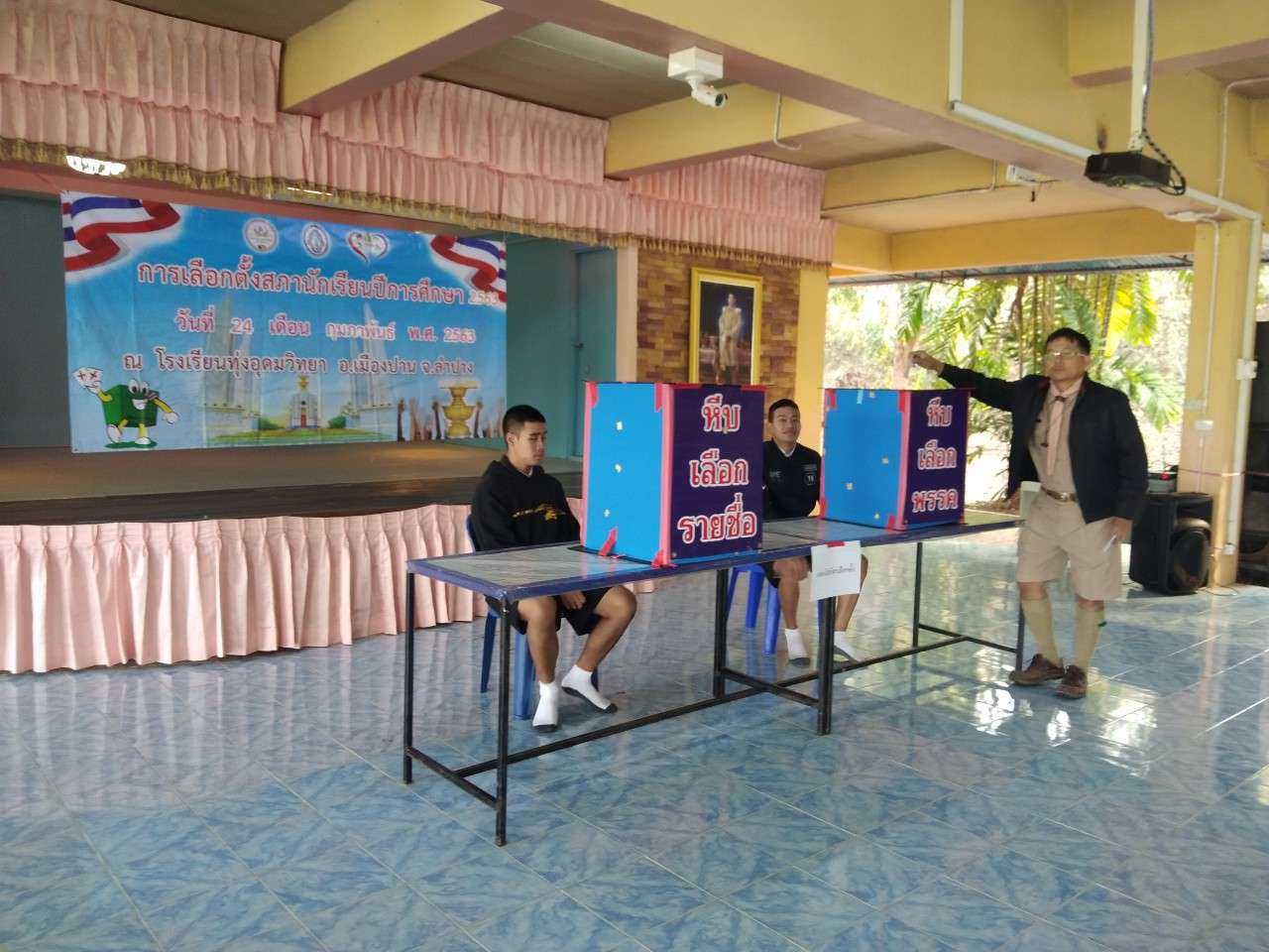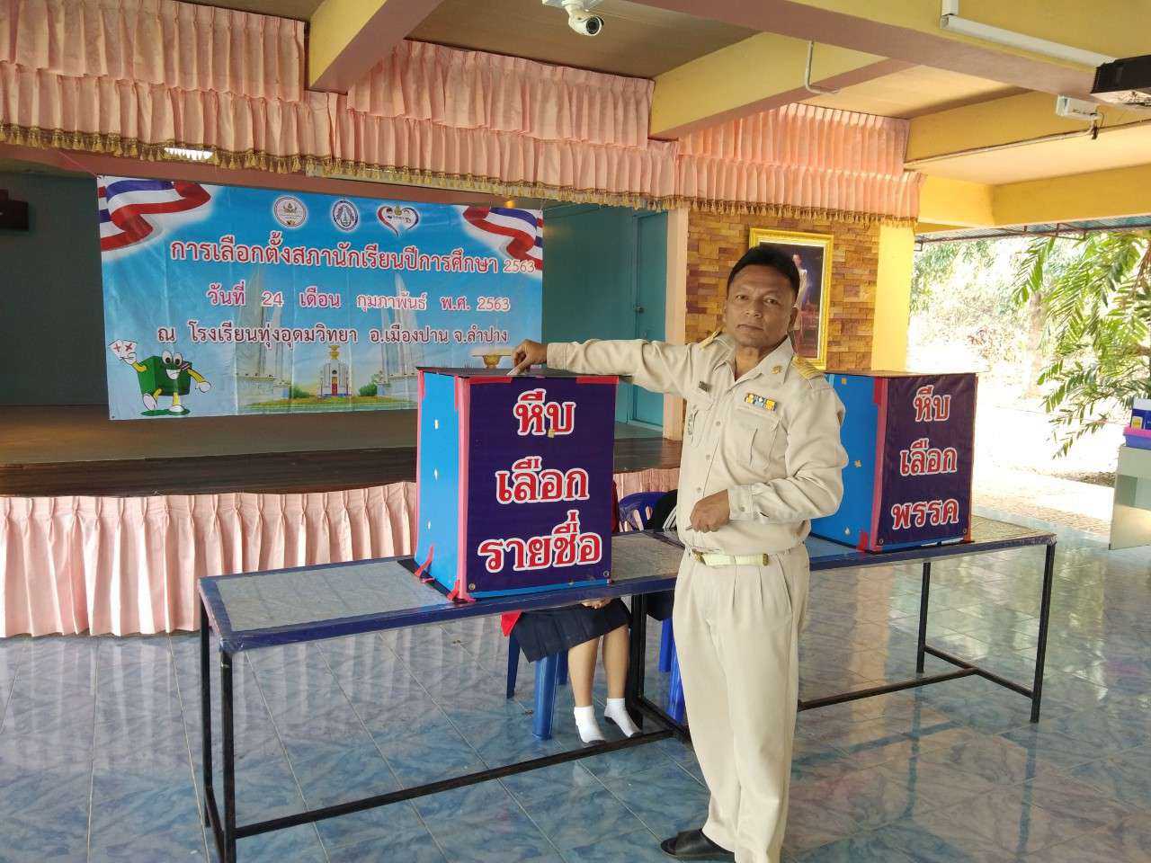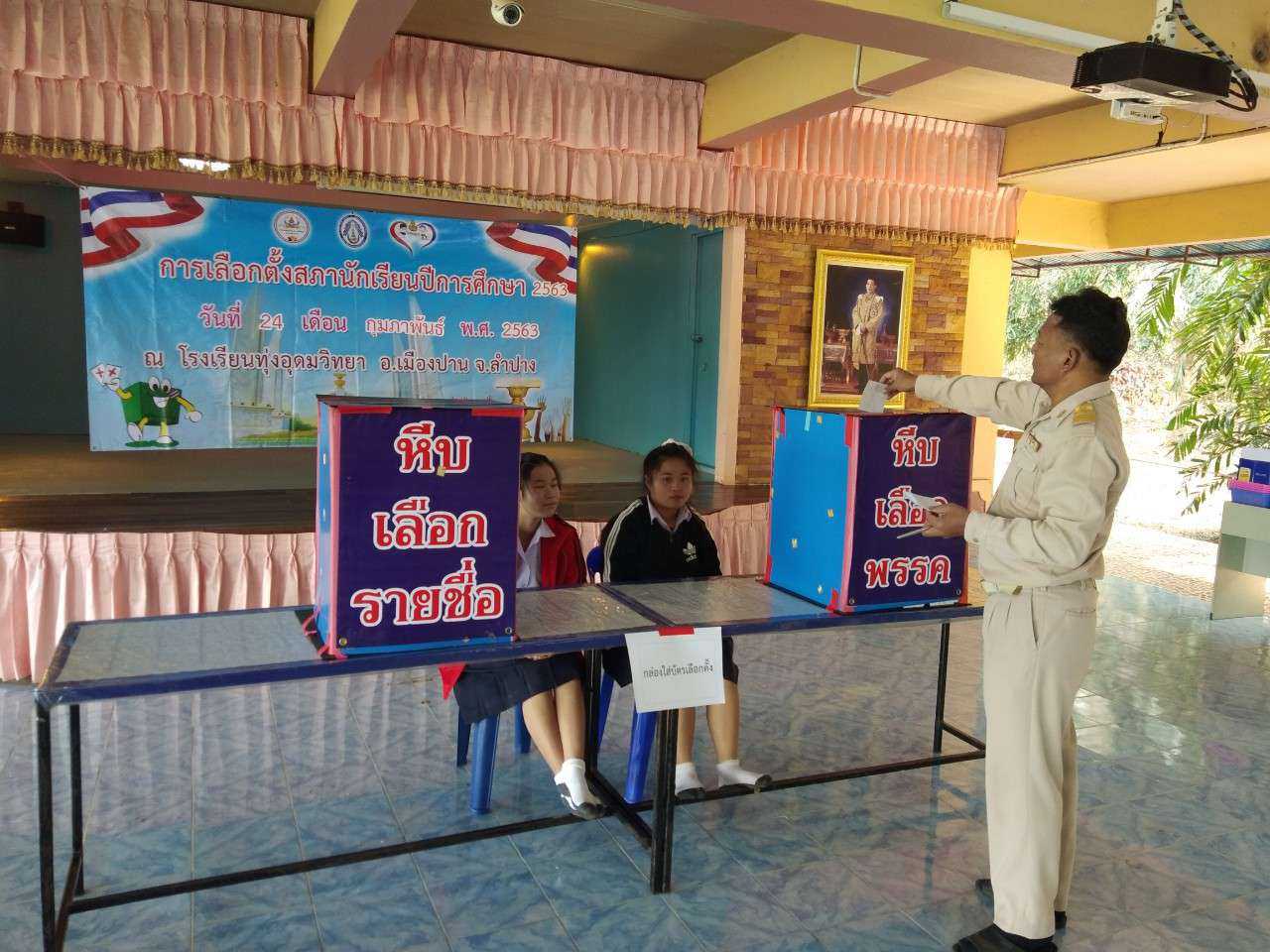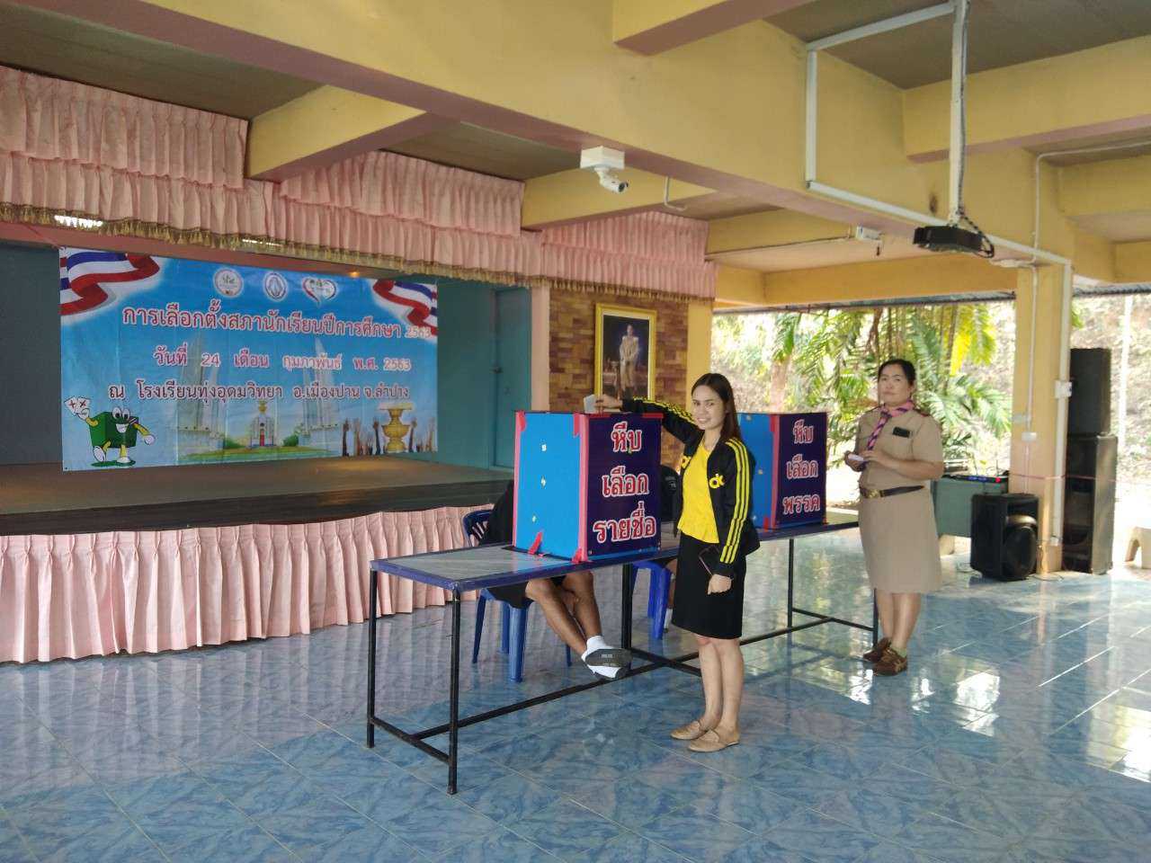 โรงเรียนทุ่งอุดมวิทยา ได้จัดกิจกรรมการเลือกตั้งสภานักเรียนชุดใหม่ ประจำปีการศึกษา ๒๕๖๓ โดยมี นายสุมล สัญญเดช ผู้อำนวยการโรงเรียนทุ่งอุดมวิทยา คณะครูและนักเรียนชั้นมัธยมศึกษา ปีที่ ๑ - ๖ เข้าร่วมลงคะแนนเสียงเลือกตั้งสภานักเรียน วัตถุประสงค์ของกิจกรรมเพื่อให้นักเรียน รู้จักระเบียบ ข้อบังคับ กฏเกณฑ์และกติกา หน้าที่ที่ตนพึงมีต่อหมู่คณะและสังคมได้อย่างเหมาะสม ทางโรงเรียนจึงนำรูปแบบประชาธิปไตยมาใช้ในโรงเรียนเพื่อเป็นการปูพื้นฐานประชาธิปไตย รู้จัก ปฏิบัติตนให้ถูกต้องตามภาระหน้าที่และวิถีตามหลักประชาธิปไตยอยู่ในสังคมอย่างมีความสุข วันที่ ๒๔ กุมภาพันธ์ ๒๕๖๓ ณ โรงเรียนทุ่งอุดมวิทยา ตำบลบ้านขอ อำเภอเมืองปาน จังหวัดลำปาง S:1