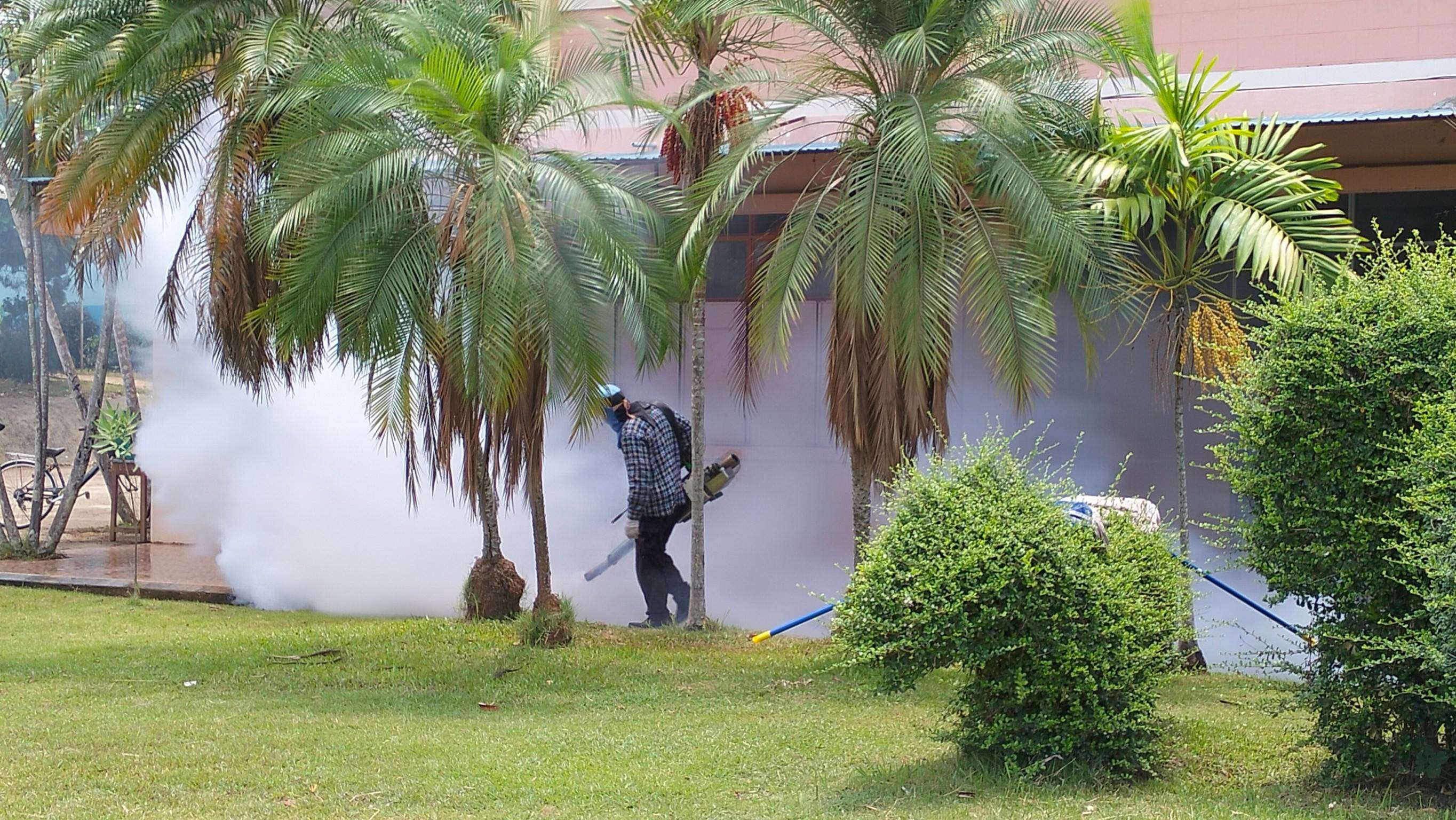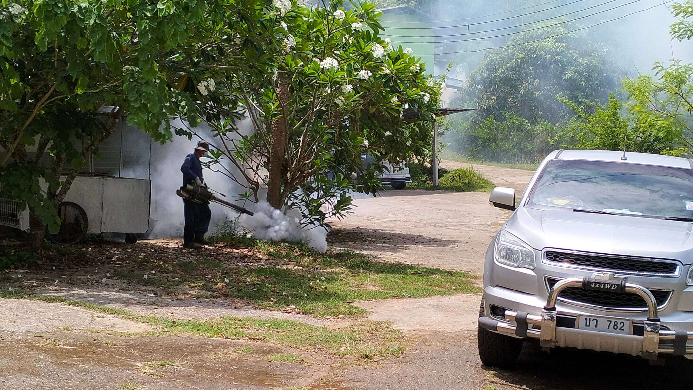 การพ่นหมอกควัน จาก อบต. เตรียมความพร้อมก่อนเปิดภาคเรียน
