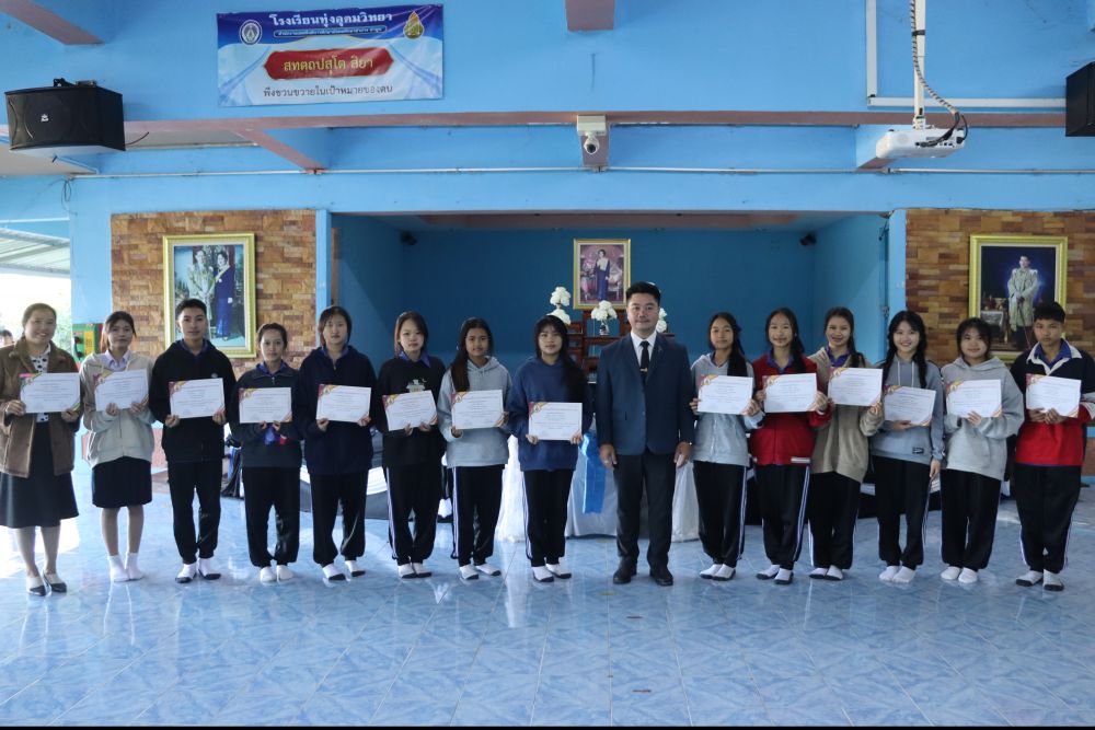 วันที่ 2 ธันวาคม 2568 โรงเรียนทุ่งอุดมวิทยา จัดกิจกรรมพิธีมอบเกียรติบัตรให้แก่นักเรียน และครูผู้ฝึกสอนที่เข้าร่วมการแข่งขันงานศิลปหัตถกรรมนักเรียน ระดับเขตพื้นที่การศึกษา ครั้งที่ 73 ประจำปีการศึกษา 2568 และพิธีมอบเกียรติบัตรให้แก่นักเรียน และครูผู้ผ่านการฝึกอบรมการช่วยชีวิตขั้นพื้นฐานสำหรับประชาชนทั่วไป และการใช้เครื่อง ADE โดยมี นายศุภกิจ ไชยรินทร์ รองผู้อำนวยการ รักษาการในตำแหน่ง ผู้อำนวยการโรงเรียนทุ่งอุดมวิทยา เป็นประธานในพิธีมอบเกียรติบัตร S:1