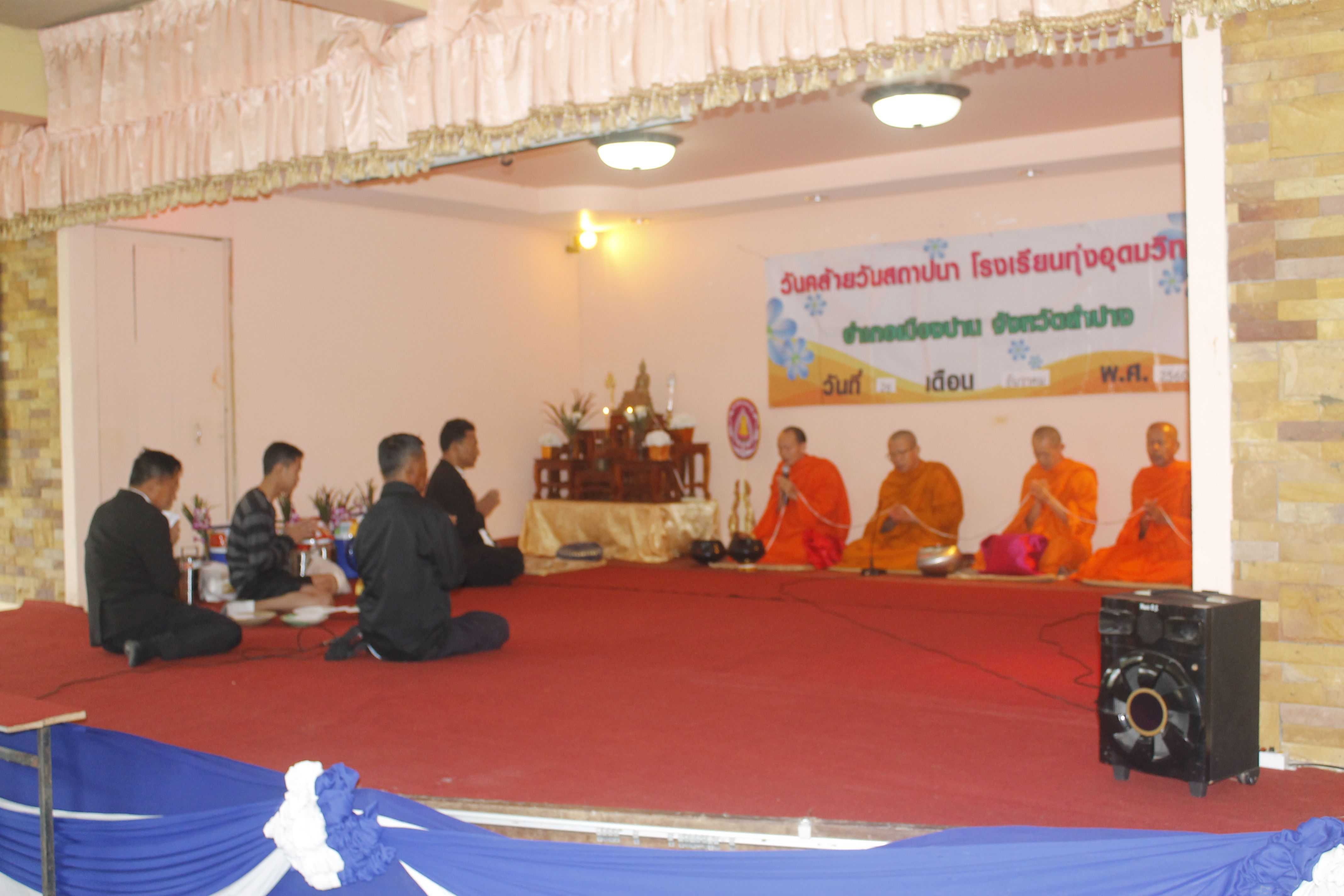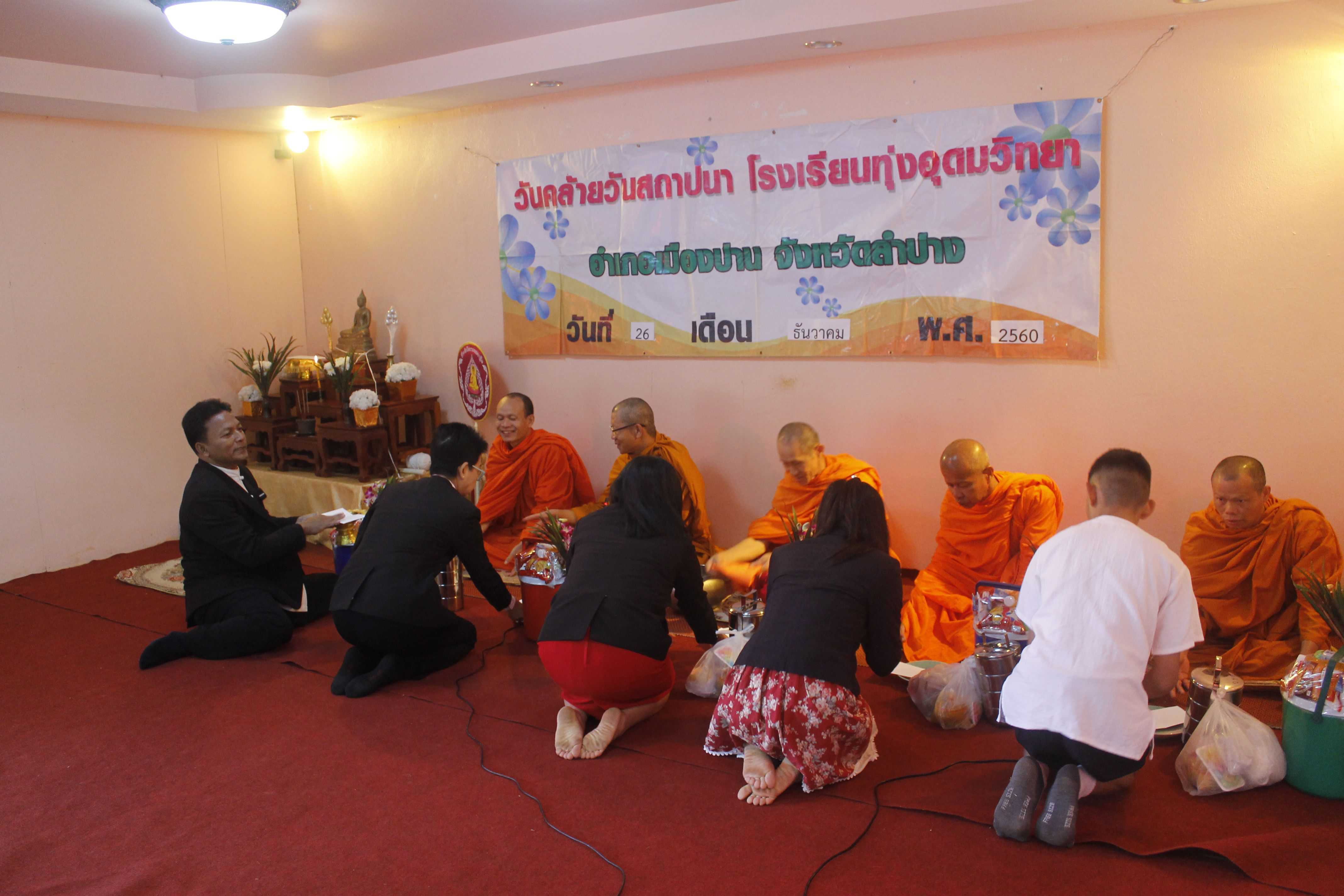 นายสุมล สัญญเดช ผู้อำนวยการโรงเรียนทุ่งอุดมวิทยา พร้อมด้วยคณะครูและนักเรียน จัดพิธีทำบุญตักบาตร เนื่องในวันสถาปนาโรงเรียน ณ โรงเรียนทุ่งอุดมวิทยา อ.เมืองปาน จ.ลำปาง S:1