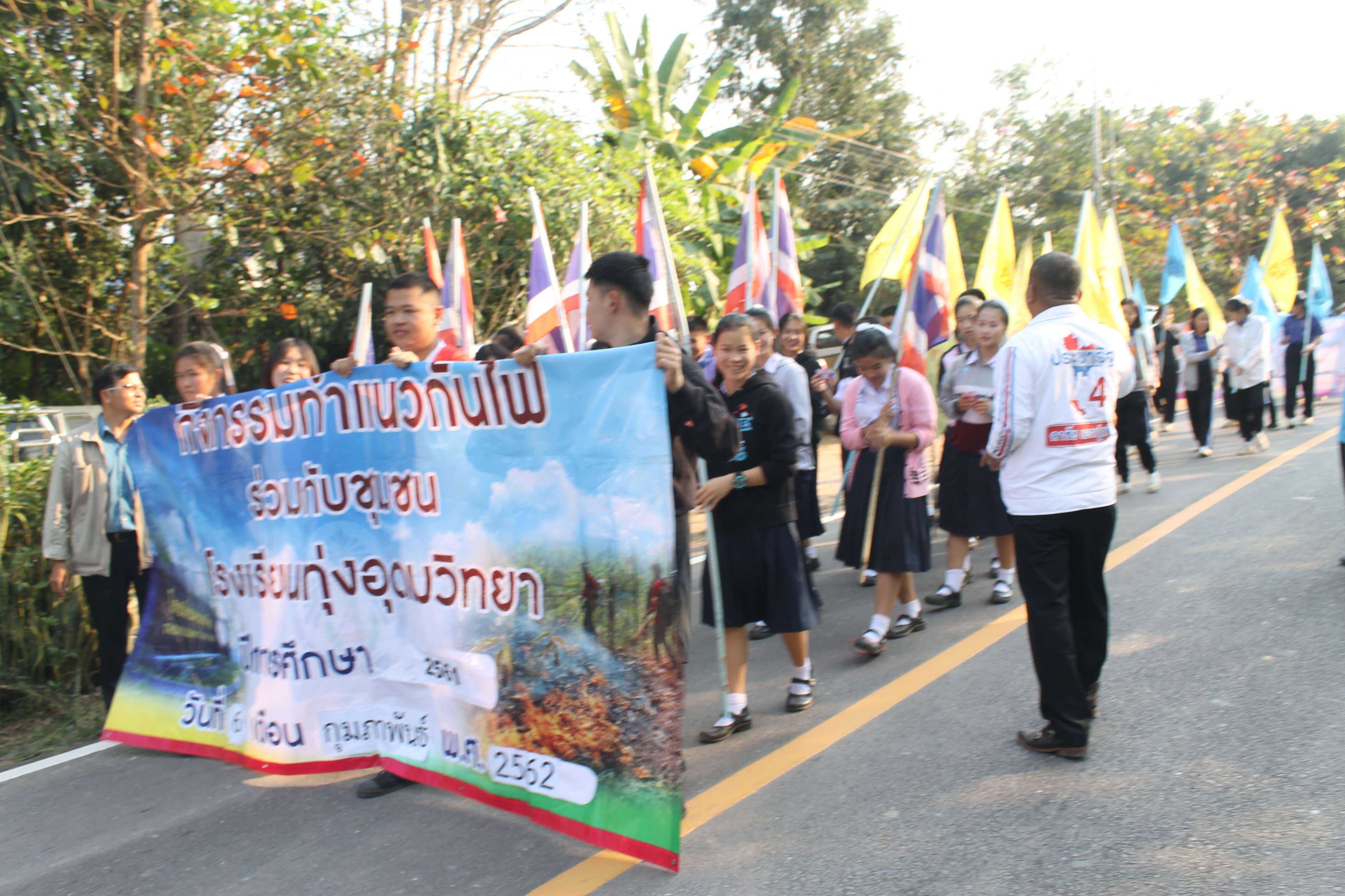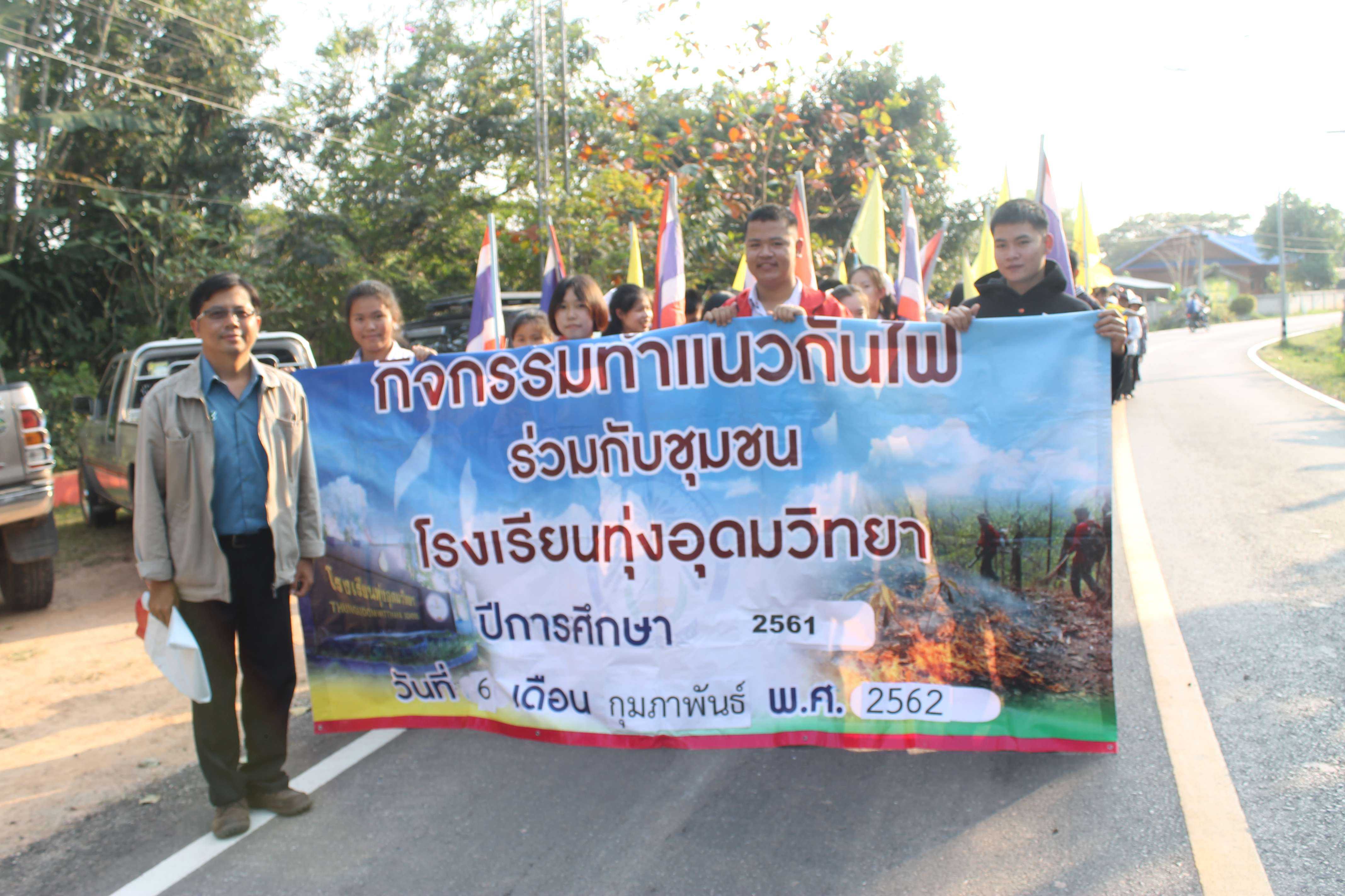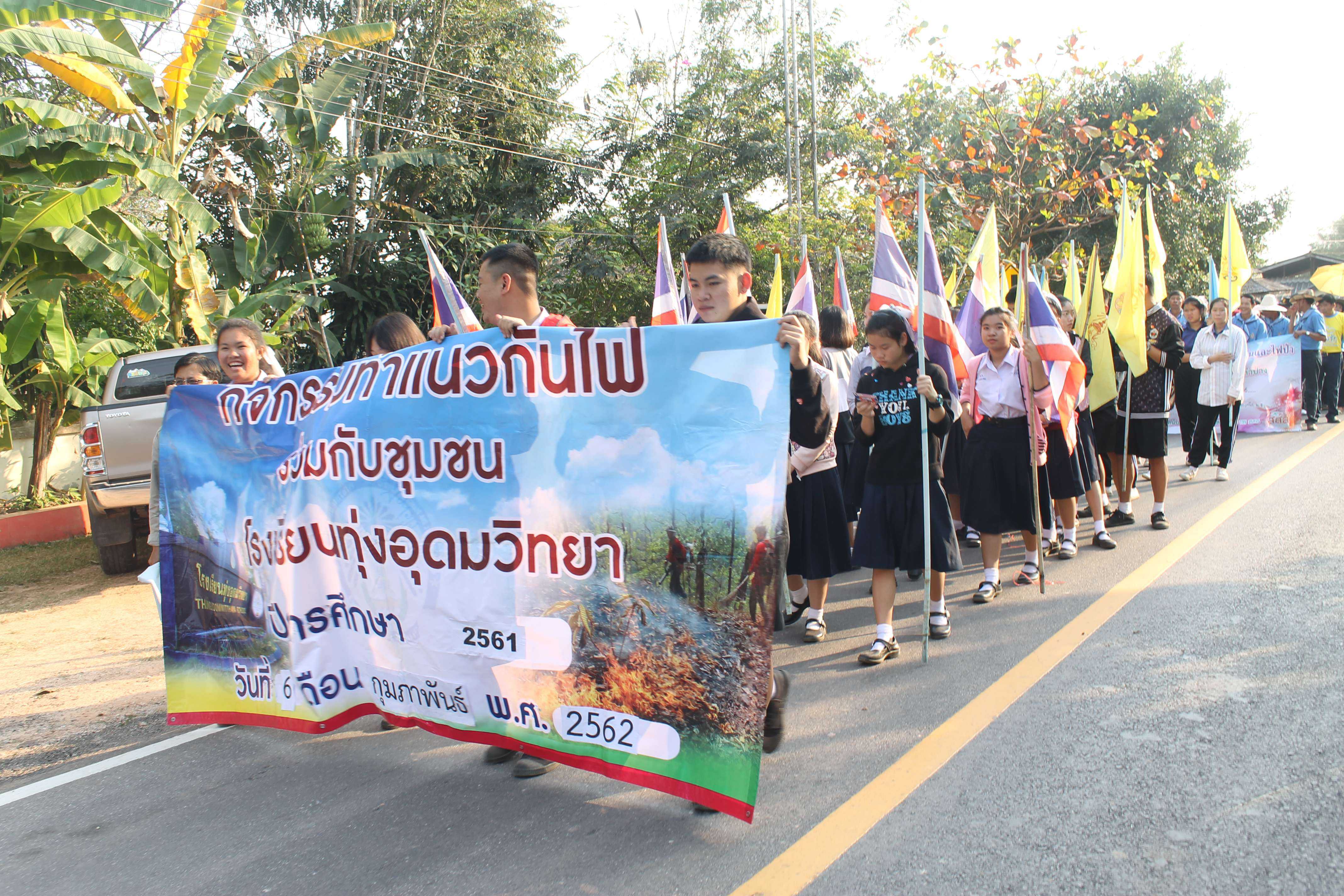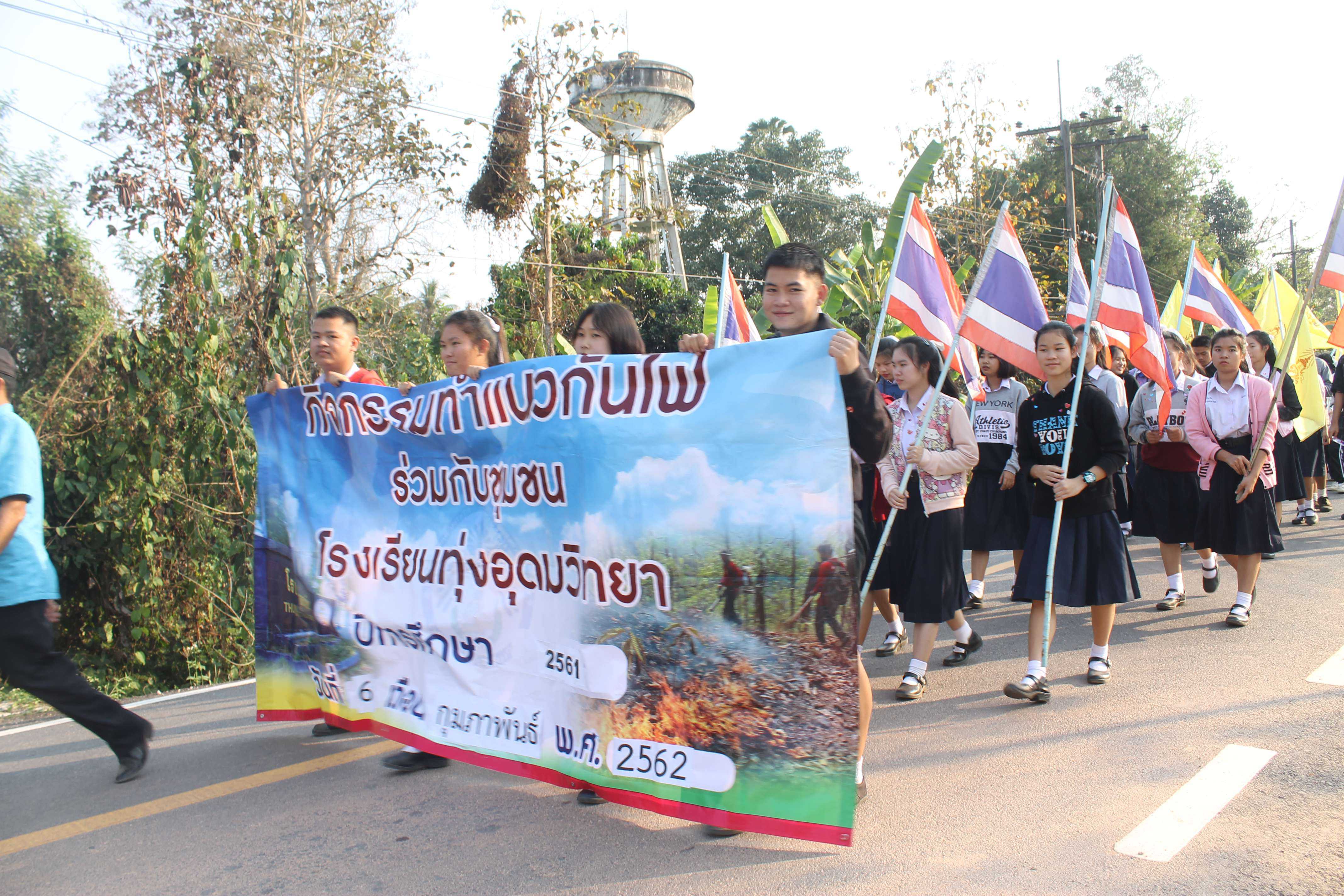ในวันที่ ๑๔ กุมภาพันธ์ ๒๕๖๒ คณะครูโรงเรียนทุ่งอุดมวิทยา ได้นำนักเรียนไปร่วมรณรงค์ ในโครงการการป้องกันและลดปัญหาหมอกควันในพื้นที่ตำบลบ้านขอ โดยบูรณาการ การดำเนินงานร่วมกับชมรมกำนันผู้ใหญ่บ้าน หน่วยราชการ เอกชนและอาสาสมัครในพื้นที่ เพื่อขยายเครือข่ายในการอนุรักษ์ป่าต้นน้ำและป้องกันแก้ไขปัญหาไฟป่า หมอกควันในพื้นที่ ณ เขตพื้นที่ชุมชน ตำบลบ้านขอ อำเภอเมืองปาน จังหวัดลำปาง S:1