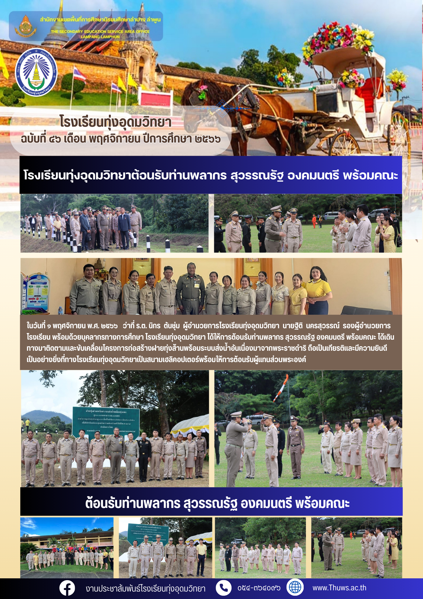 โรงเรียนทุ่งอุดมวิทยาต้อนรับท่านพลากร สุวรรณรัฐ องคมนตรี พร้อมคณะ
