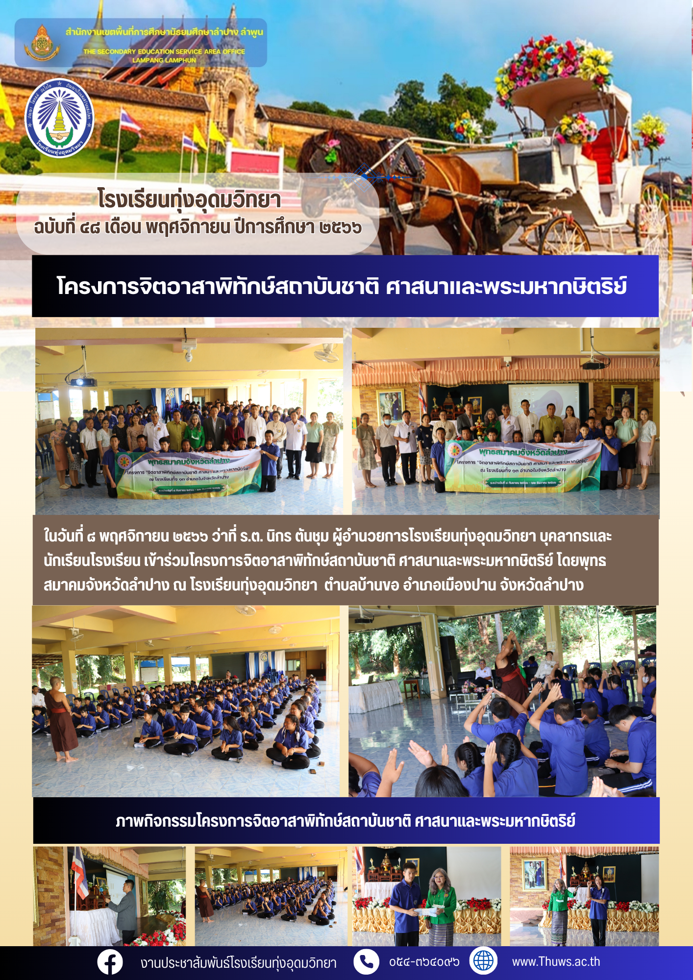 โครงการจิตอาสาพิทักษ์สถาบันชาติ ศาสนาและพระมหากษิตริย์ โดยพุทธสมาคมจังหวัดลำปาง ณ โรงเรียนทุ่งอุดมวิทยา