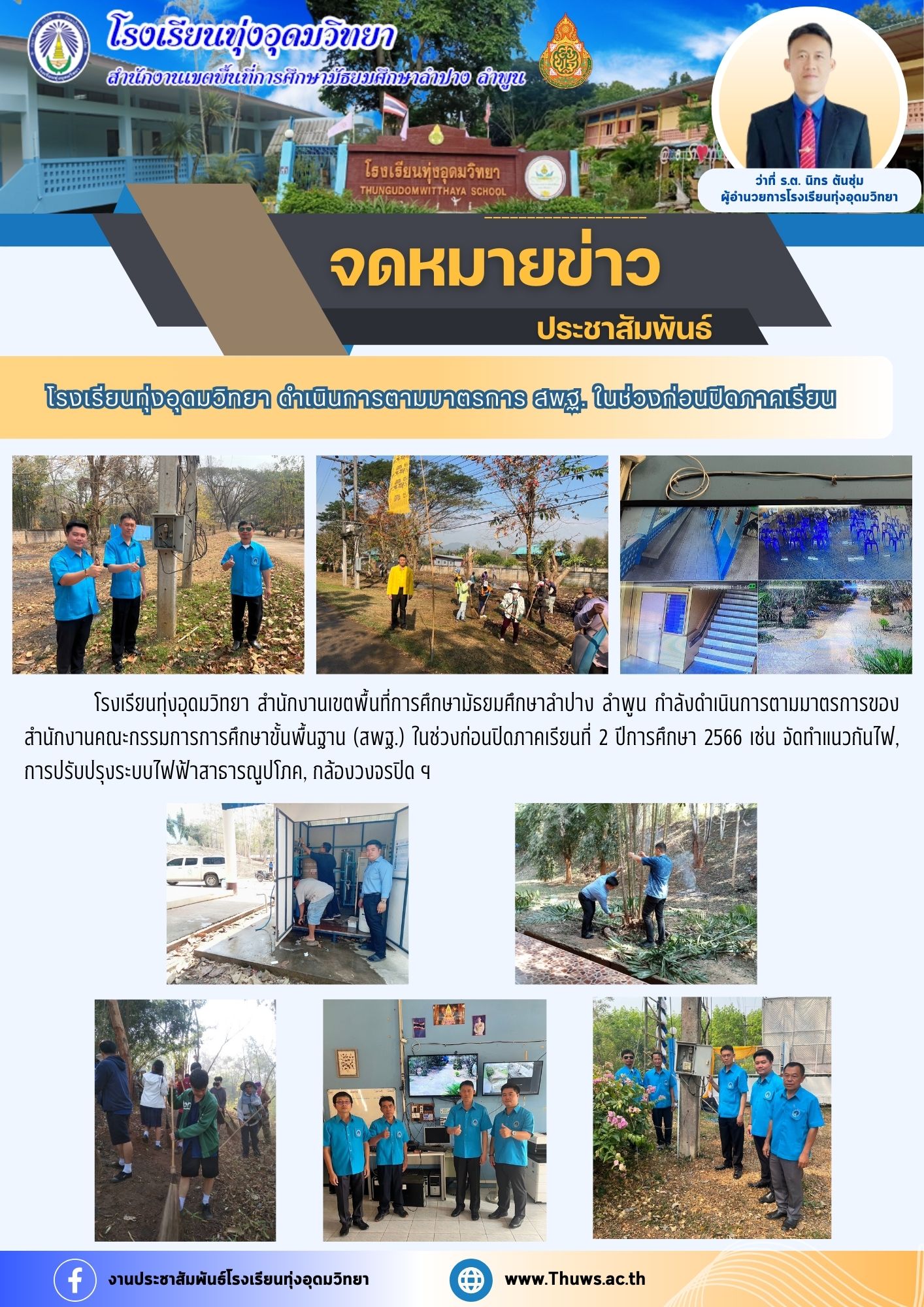 โรงเรียนทุ่งอุดมวิทยาได้ดำเนินการตามมาตรการของสำนักงานคณะกรรมการการศึกษาขั้นพื้นฐาน (สพฐ.) ในการรักษาความปลอดภัยของสถานศึกษาก่อนปิดภาคเรียนที่ 2 ปีการศึกษา 2566