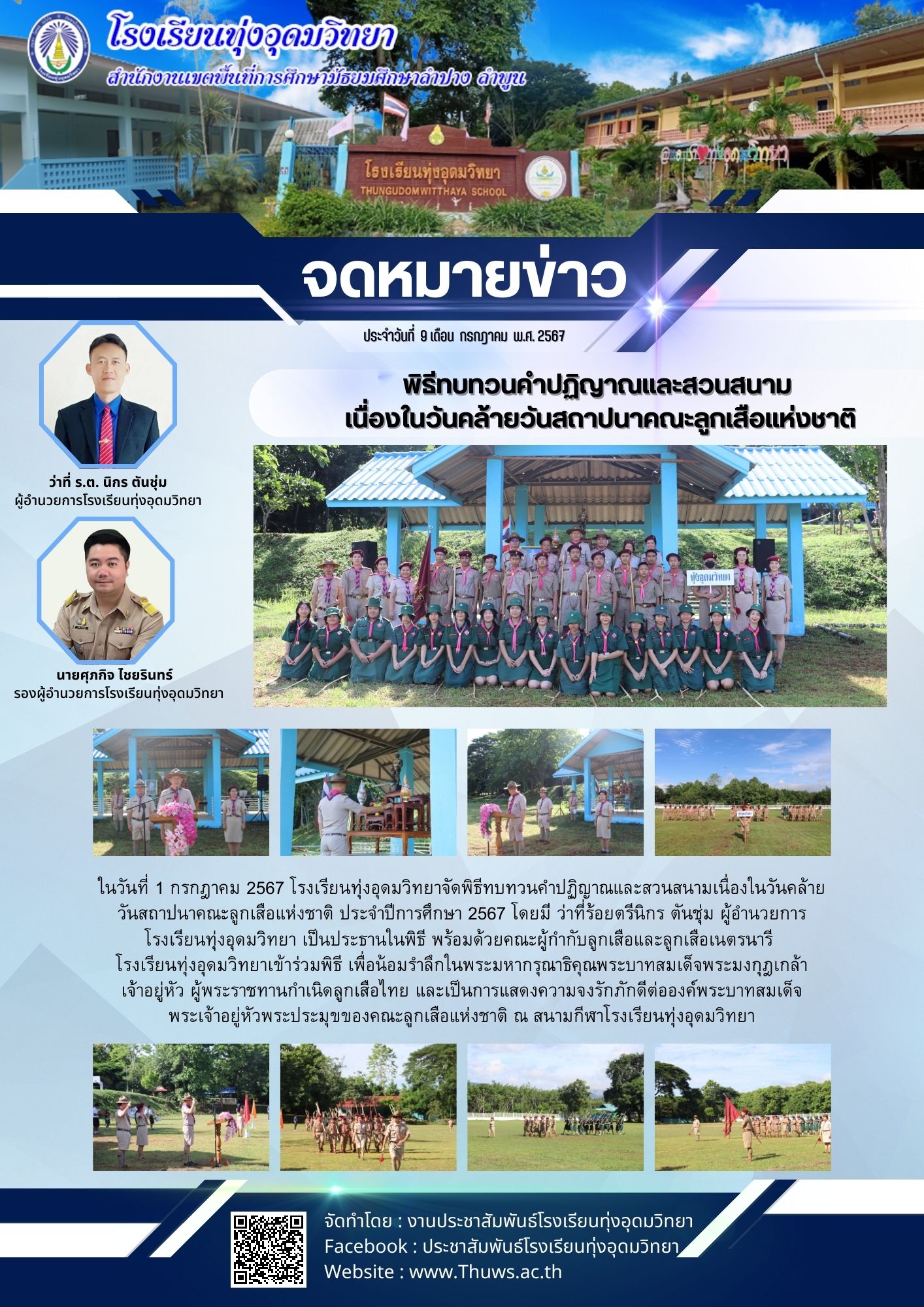 โรงเรียนทุ่งอุดมวิทยาจัดพิธีทบทวนคำปฏิญาณและสวนสนามของลูกเสือเนตรนารี ประจำปีการศึกษา 2567