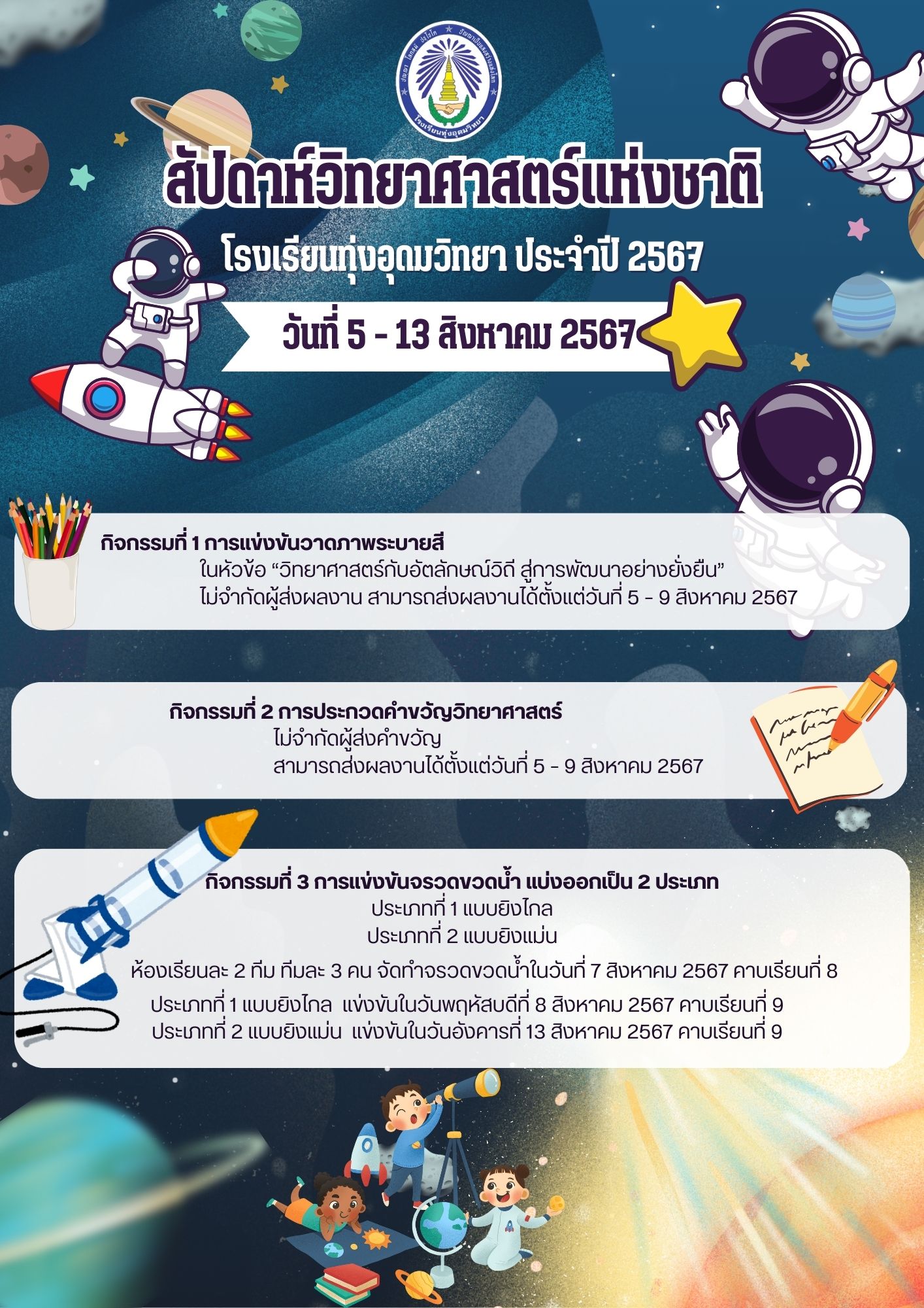 เชิญชวนนักเรียนที่สนใจ เข้าร่วมแข่งขันกิจกรรมสัปดาห์วิทยาศาสตร์แห่งชาติ