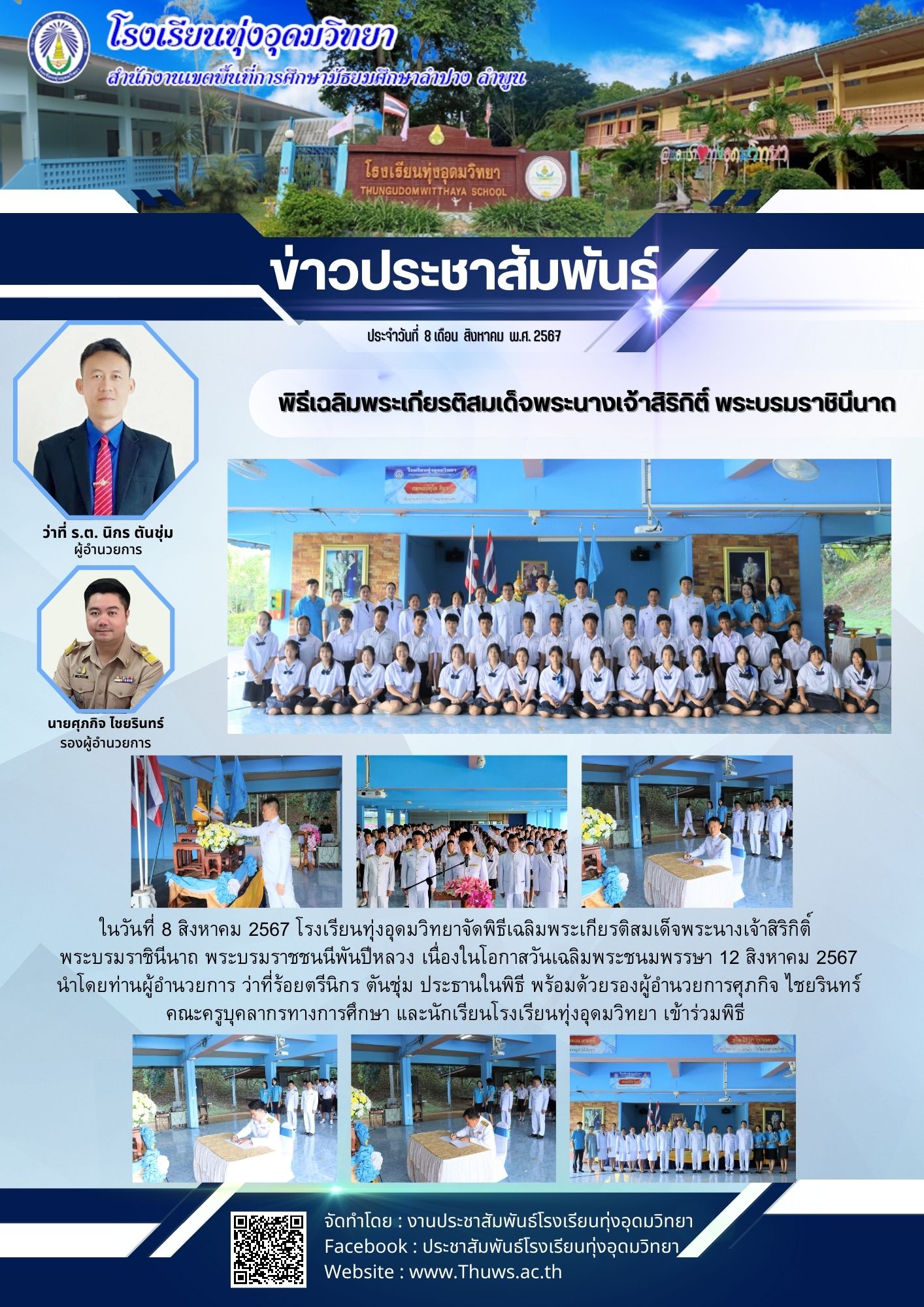 โรงเรียนทุ่งอุดมวิทยาจัดพิธีเฉลิมพระเกียรติสมเด็จพระนางเจ้าสิริกิติ์ พระบรมราชินีนาถ พระบรมราชชนนีพันปีหลวง