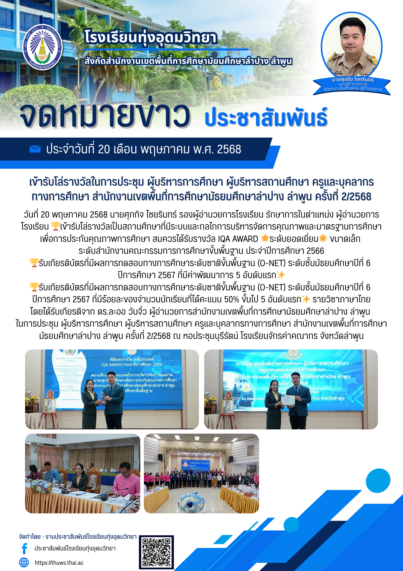 รับโล่รางวัลในการประชุม ผู้บริหารการศึกษา ผู้บริหารสถานศึกษา ครูและบุคลากรทางการศึกษา สำนักงานเขตพื้นที่การศึกษามัธยมศึกษาลำปาง ลำพูน ครั้งที่ 2/2568