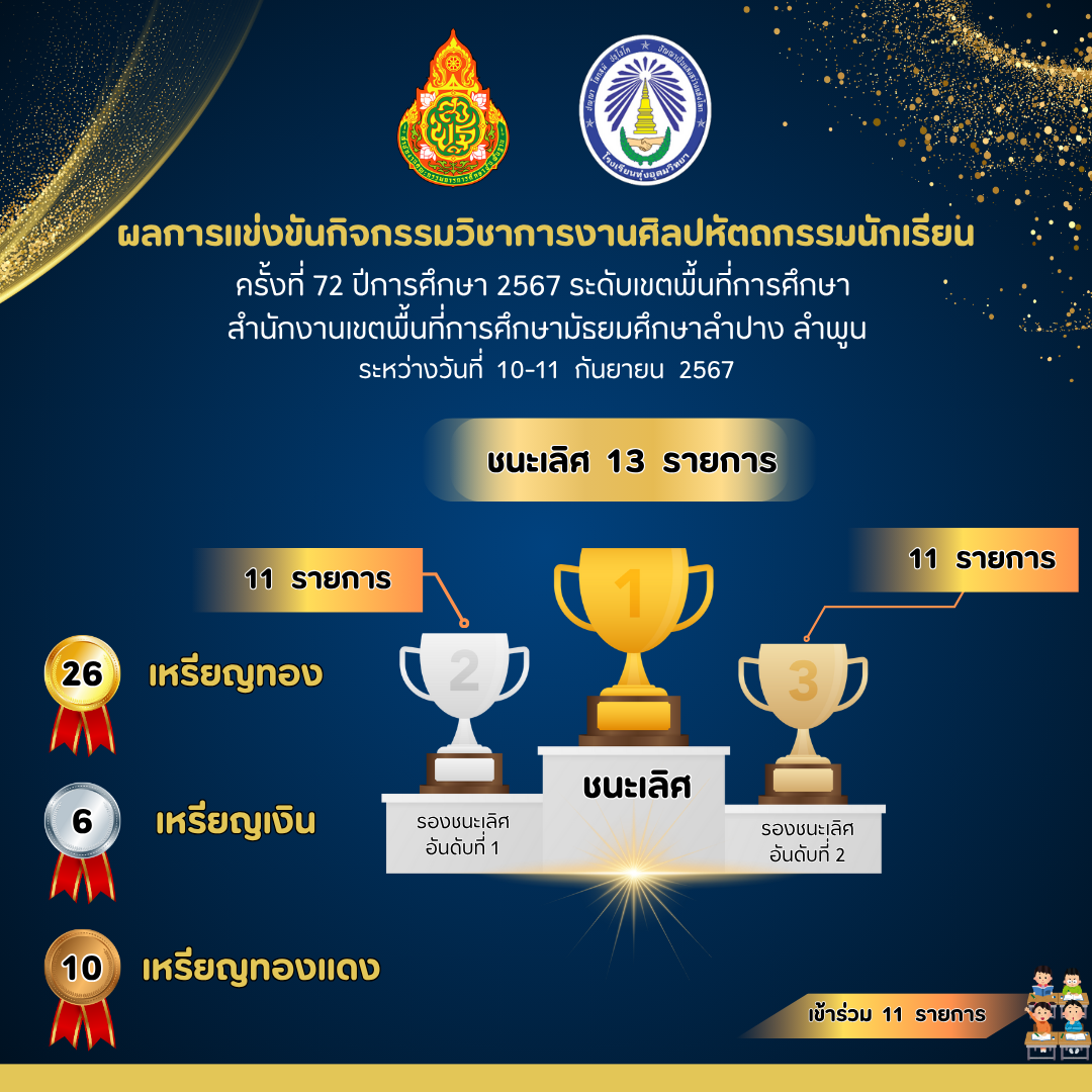 สรุปผลการแข่งขันกิจกรรมวิชาการงานศิลปหัตถกรรมนักเรียน ครั้งที่ 72 ปีการศึกษา 2567 ระดับเขตพื้นที่การศึกษา