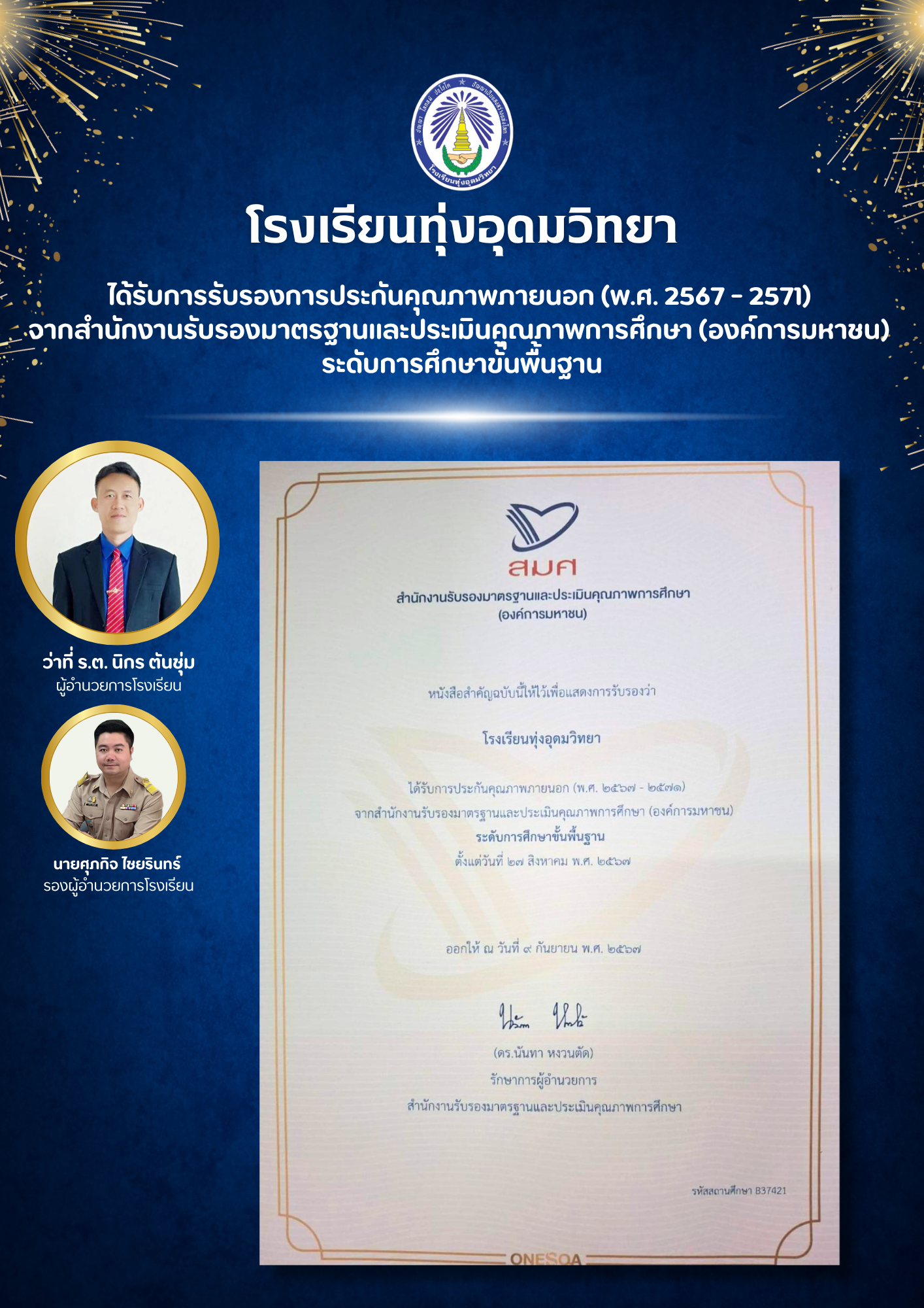 ได้รับการรับรองการประกันคุณภาพภายนอก (พ.ศ. 2567 - 2571) จากสำนักงานรับรองมาตรฐานและประเมินคุณภาพการศึกษา (องค์การมหาชน) ระดับการศึกษาขั้นพื้นฐาน