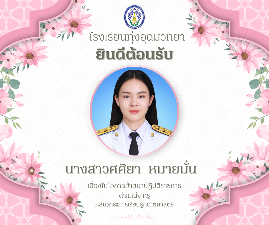 โรงเรียนทุ่งอุดมวิทยา ยินดีต้อนรับ "นางสาวศศิยา หมายมั่น" เนื่องในโอกาสย้ายมาปฎิบัติราชการ ตำแหน่ง ครู วิชาเอกคณิตศาสตร์ กลุ่มสาระการเรียนรู้คณิตศาสตร์
