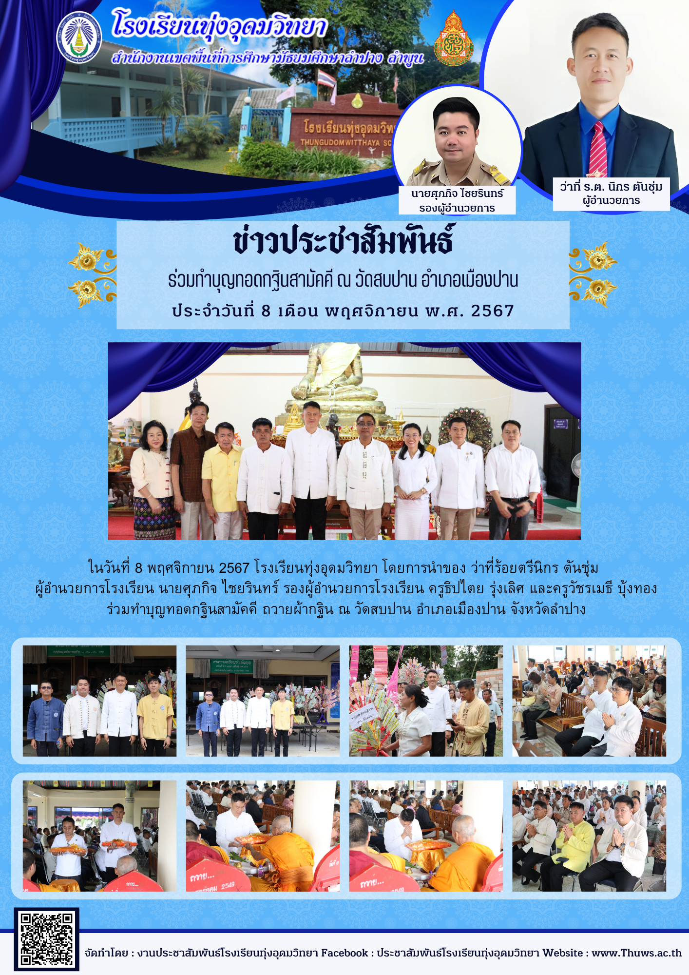 ร่วมทำบุญทอดกฐินสามัคคี ถวายผ้ากฐิน ณ วัดสบปาน อำเภอเมืองปาน จังหวัดลำปาง