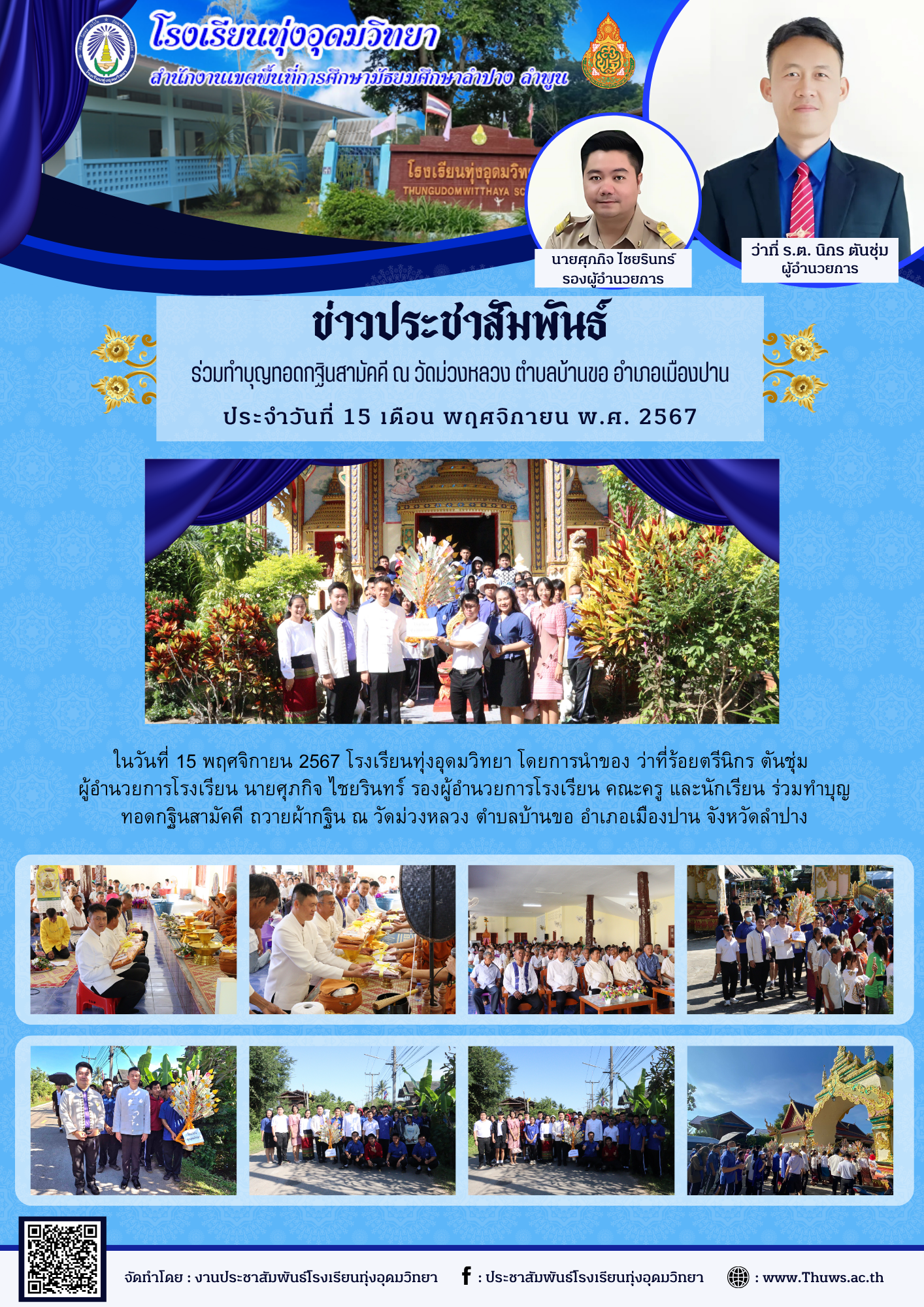 ร่วมทำบุญทอดกฐินสามัคคี ถวายผ้ากฐิน ณ วัดม่วงหลวง ตำบลบ้านขอ อำเภอเมืองปาน จังหวัดลำปาง
