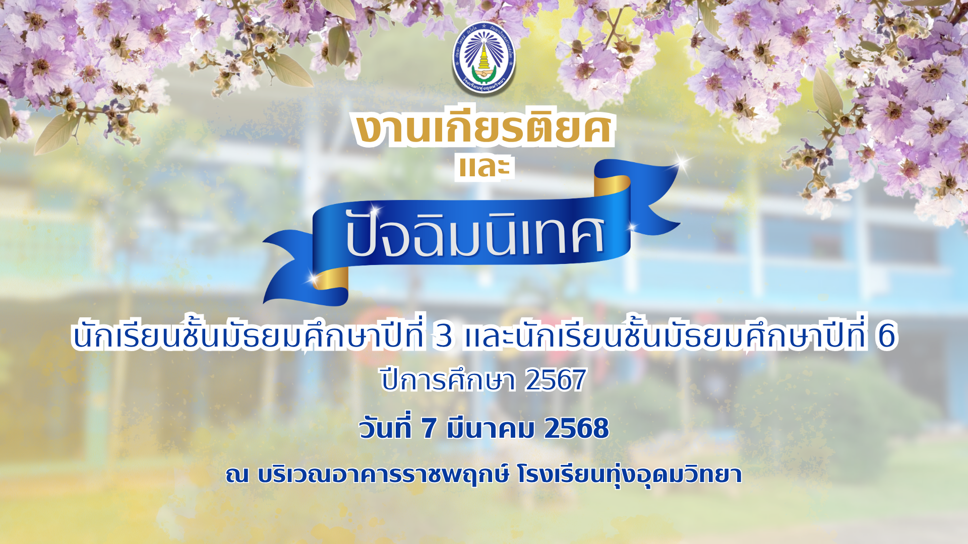 ขอเชิญชวนทุกคนมาร่วมแสดงความยินดีให้กับนักเรียนชั้น ม.3 และ ม.6 เนื่องในโอกาสงานเกียรติยศและปัจฉิมนิเทศ โรงเรียนทุ่งอุดมวิทยา