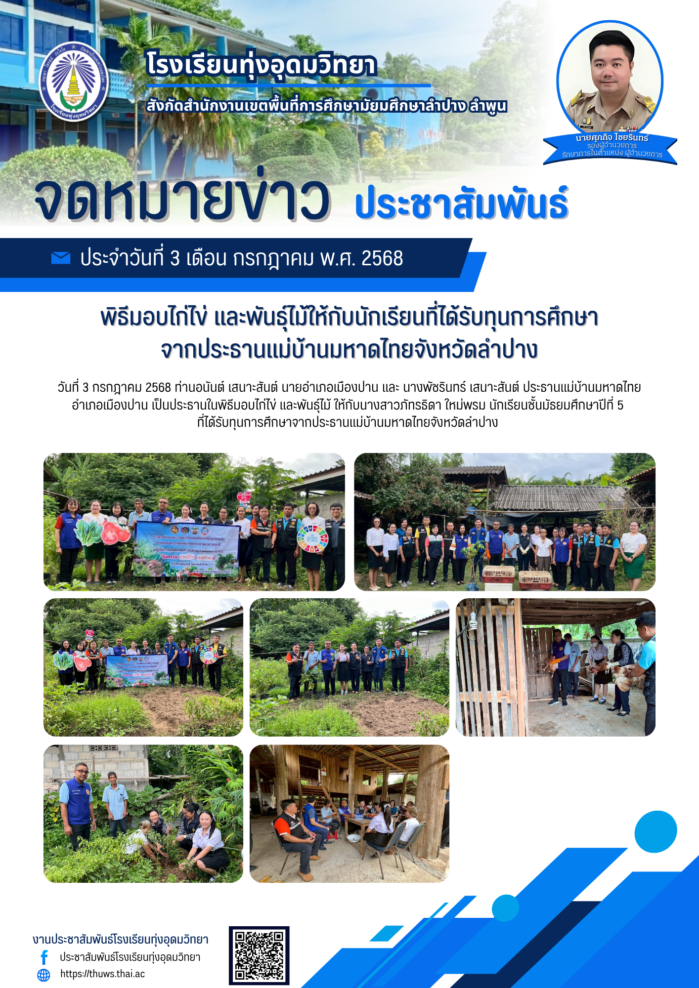 พิธีมอบไก่ไข่ และพันธุ์ไม้ให้กับนักเรียนที่ได้รับทุนการศึกษา จากประธานแม่บ้านมหาดไทยจังหวัดลำปาง