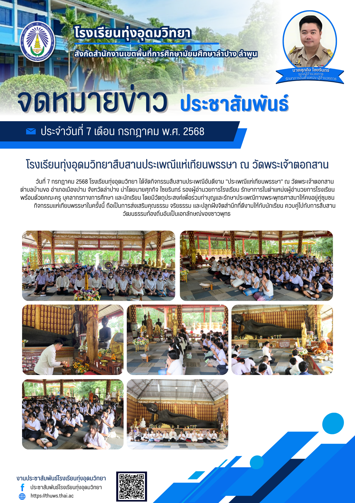 โรงเรียนทุ่งอุดมวิทยาสืบสานประเพณีแห่เทียนพรรษา ณ วัดพระเจ้าตอกสาน