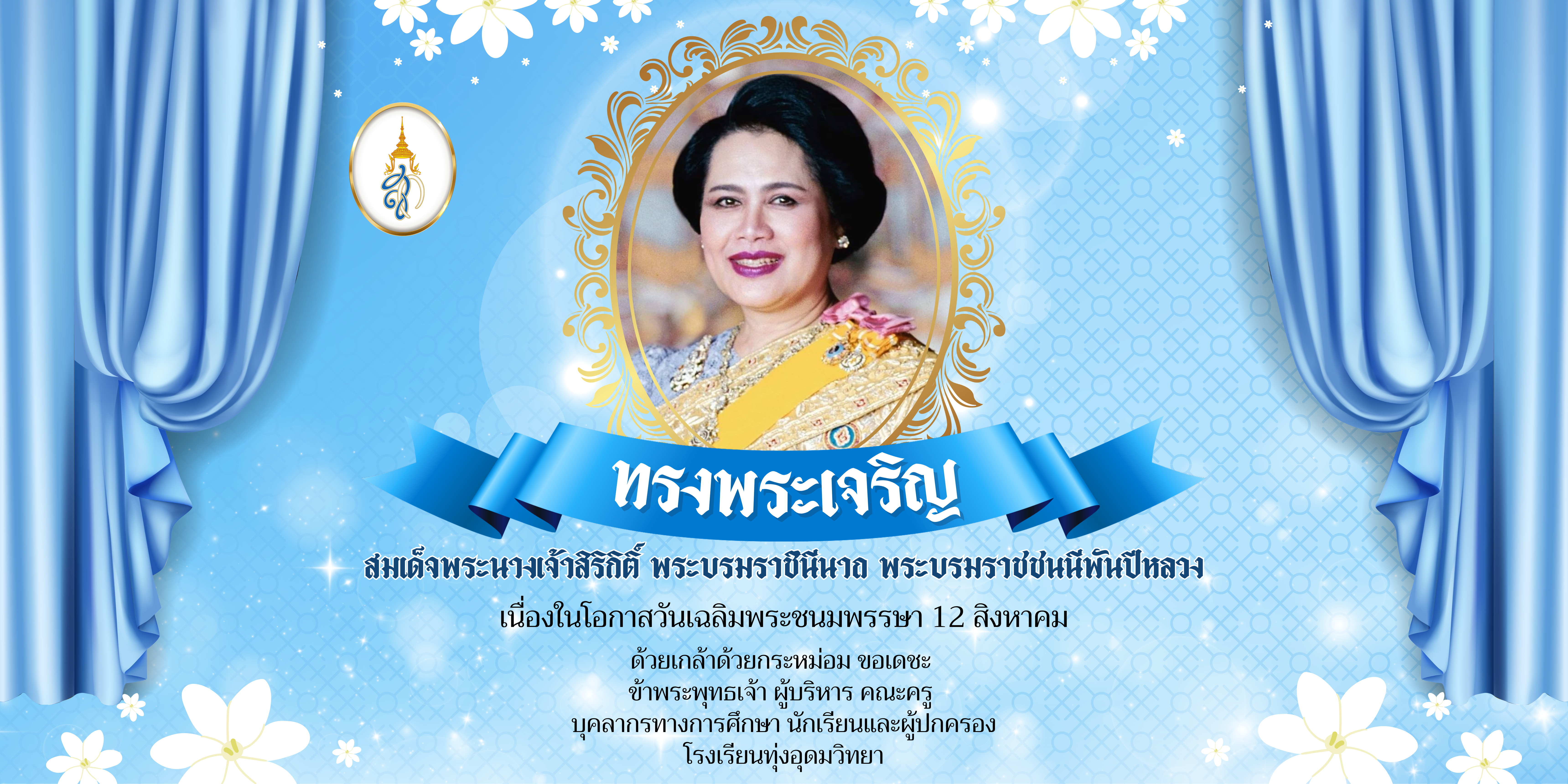 12 สิงหาคม เนื่องในโอกาสวันเฉลิมพระชนมพรรษา สมเด็จพระนางเจ้าสิริกิติ์ พระบรมราชินีนาถ พระบรมราชชนนีพันปีหลวง ขอพระองค์ทรงพระเจริญ