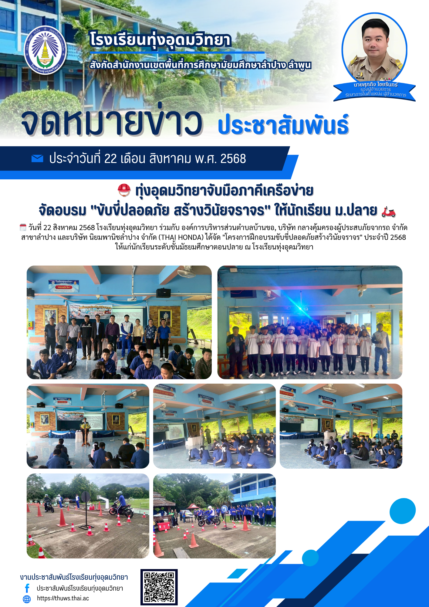 ทุ่งอุดมวิทยาจับมือภาคีเครือข่าย จัดอบรม ขับขี่ปลอดภัย สร้างวินัยจราจร ให้นักเรียน ม.ปลาย