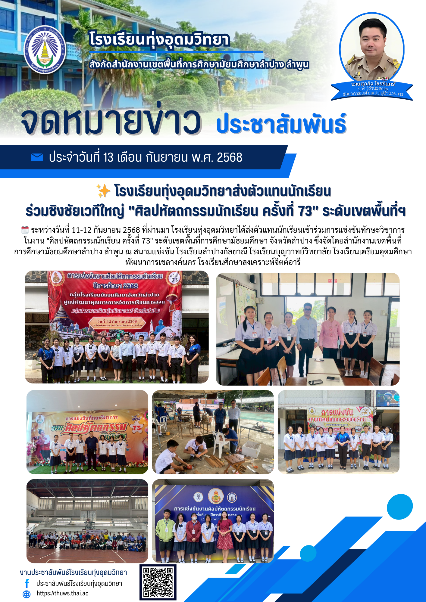 โรงเรียนทุ่งอุดมวิทยาส่งตัวแทนนักเรียน ร่วมชิงชัยเวทีใหญ่ ศิลปหัตถกรรมนักเรียน ครั้งที่ 73 ระดับเขตพื้นที่ฯ