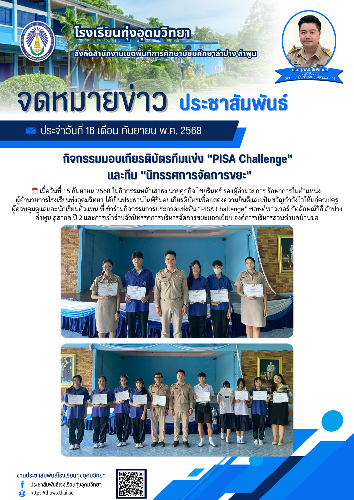 กิจกรรมมอบเกียรติบัตรทีมแข่ง PISA Challenge และทีม นิทรรศการจัดการขยะ