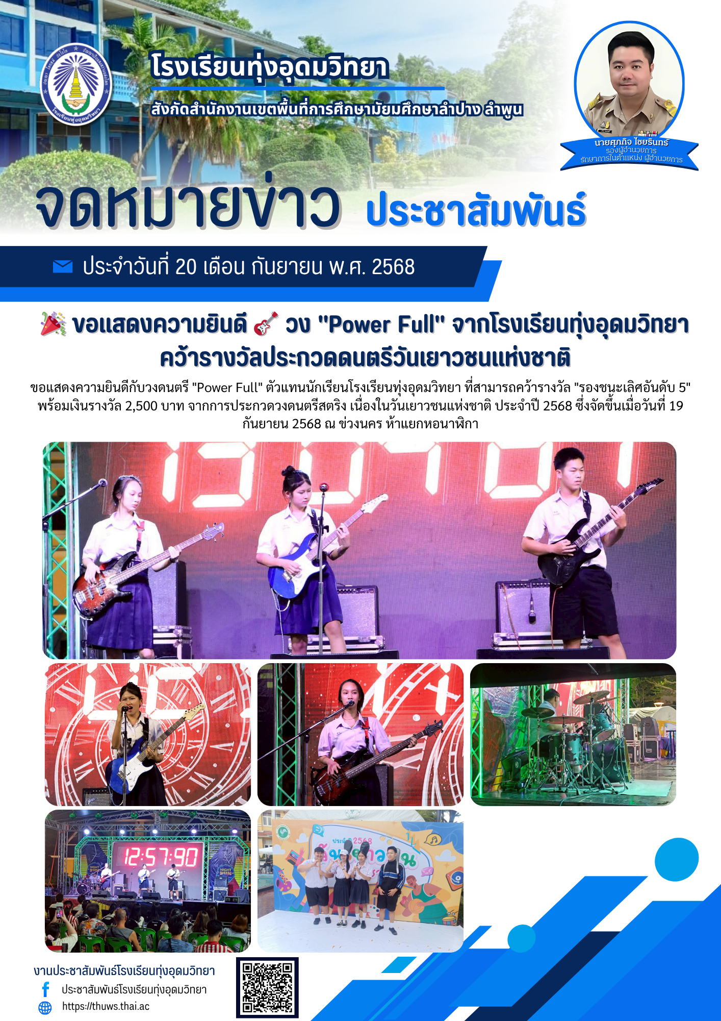 ขอแสดงความยินดี วง "Power Full" จากโรงเรียนทุ่งอุดมวิทยา คว้ารางวัลประกวดดนตรีวันเยาวชนแห่งชาติ