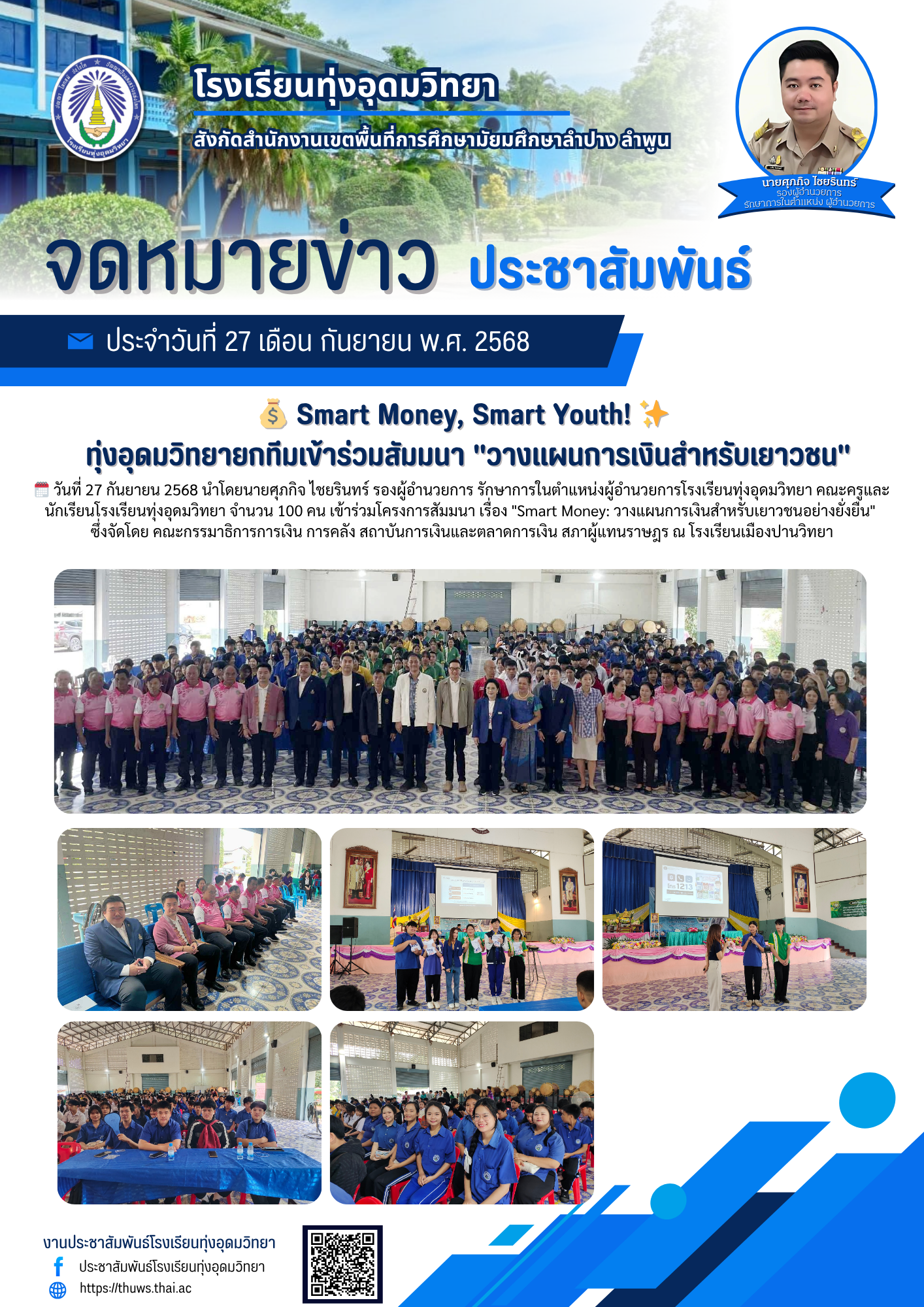 Smart Money, Smart Youth ทุ่งอุดมวิทยายกทีมเข้าร่วมสัมมนา วางแผนการเงินสำหรับเยาวชน