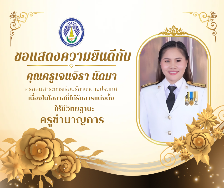 ขอแสดงความยินดีกับ คุณครูเจนจิรา นัดมา ได้รับการแต่งตั้งให้มีวิทยฐานะ "ครูชำนาญการ"