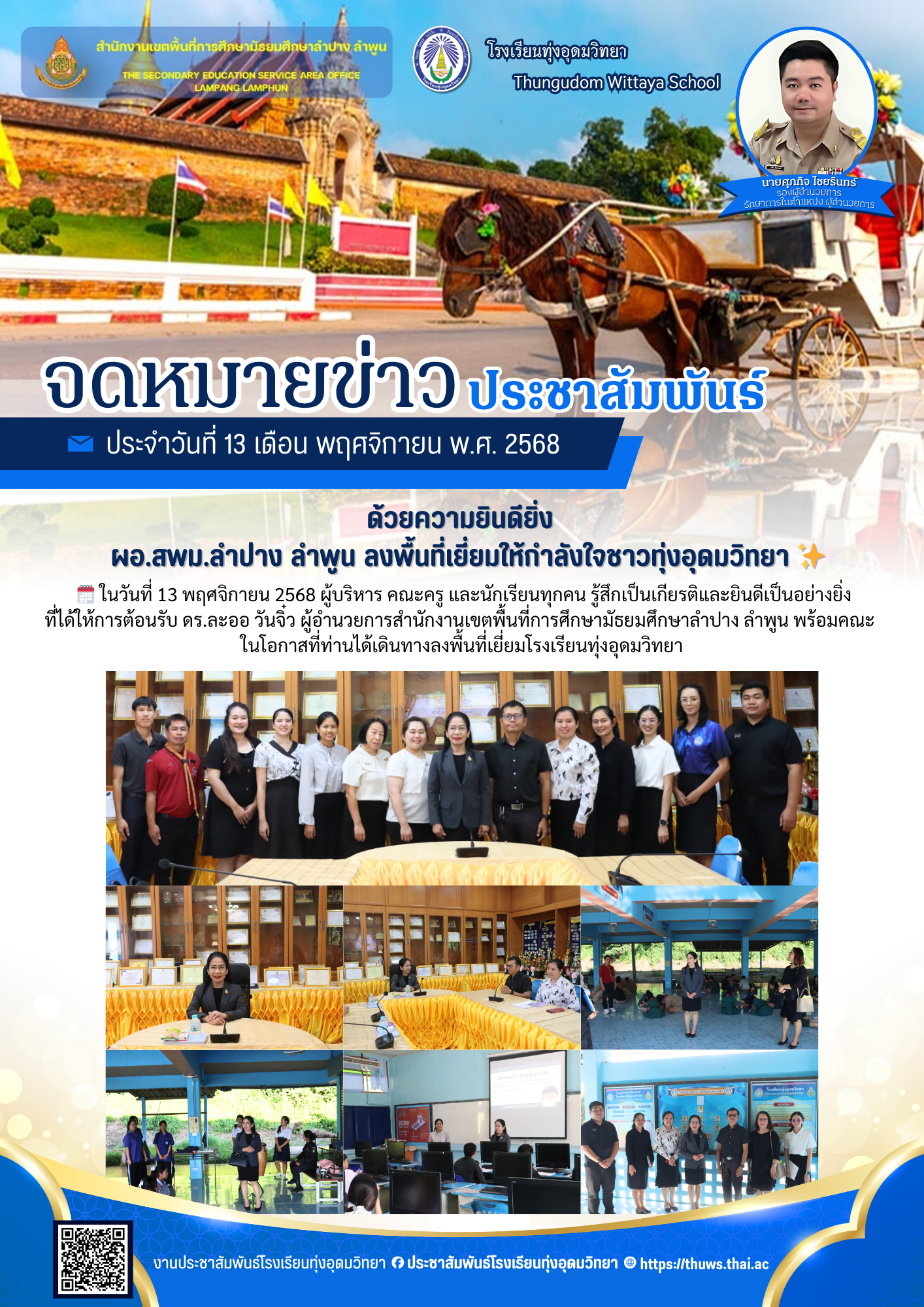 ด้วยความยินดียิ่ง ผอ.สพม.ลำปาง ลำพูน ลงพื้นที่เยี่ยมให้กำลังใจชาวทุ่งอุดมวิทยา