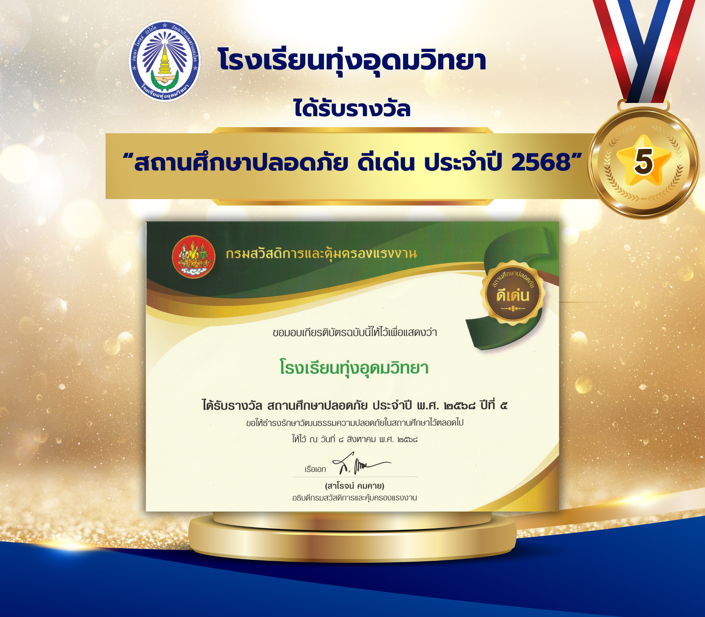 5 ปีซ้อน โรงเรียนทุ่งอุดมวิทยา ได้รับรางวัล "สถานศึกษาปลอดภัย ดีเด่น