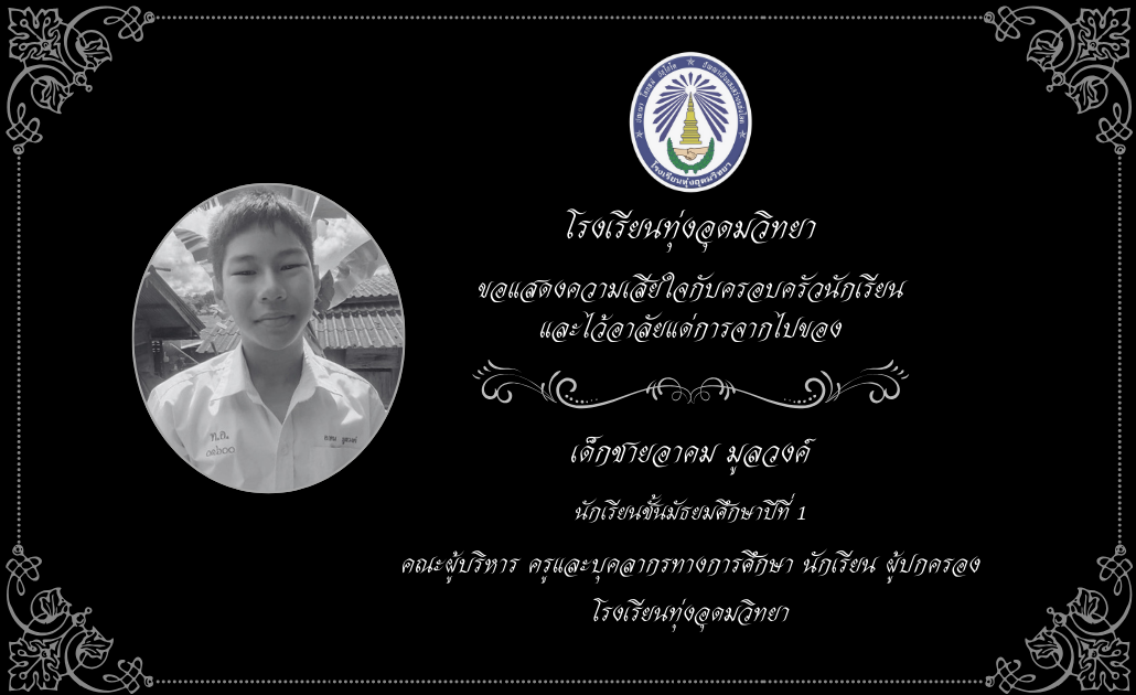 โรงเรียนทุ่งอุดมวิทยา ขอแสดงความเสียใจอย่างสุดซึ้ง ต่อการจากไปของ เด็กชายอาคม มูลวงค์ นักเรียนชั้นมัธยมศึกษาปีที่ 1