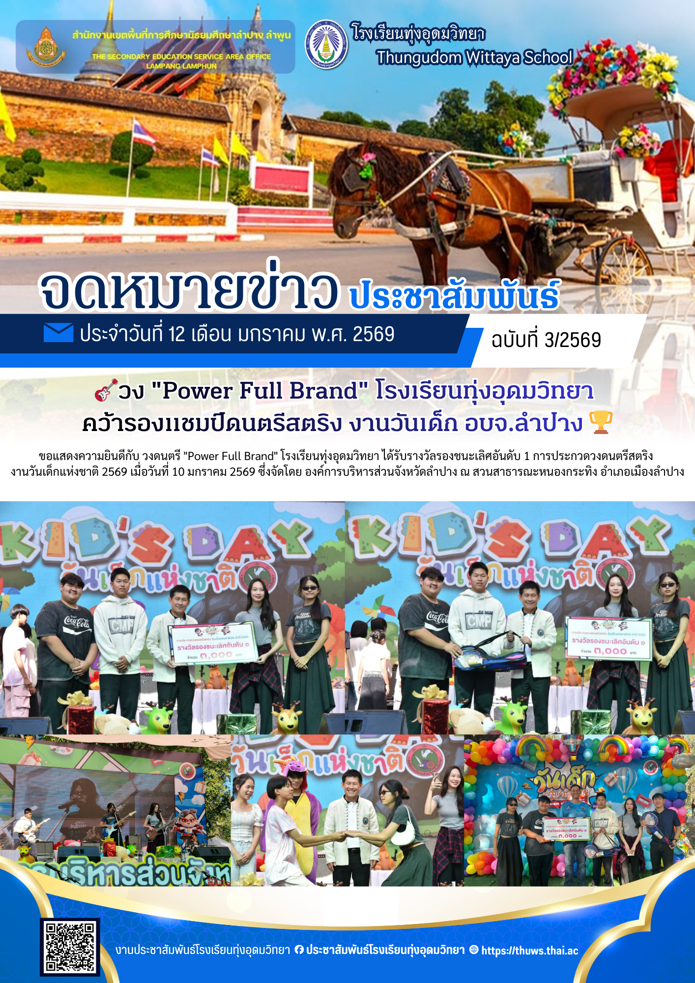 วง Power Full Brand โรงเรียนทุ่งอุดมวิทยา คว้ารองแชมป์ดนตรีสตริง งานวันเด็ก อบจ.ลำปาง