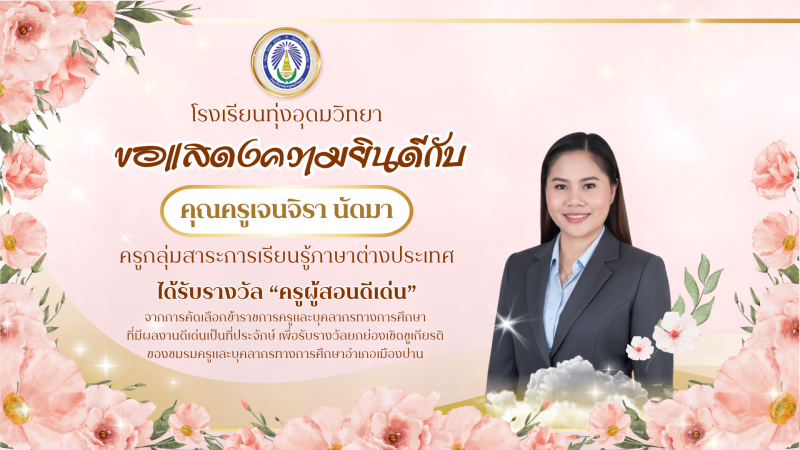 โรงเรียนทุ่งอุดมวิทยา ขอแสดงความยินดีกับผู้บริหารและคุณครูที่มีผลงานดีเด่นเป็นที่ประจักษ์