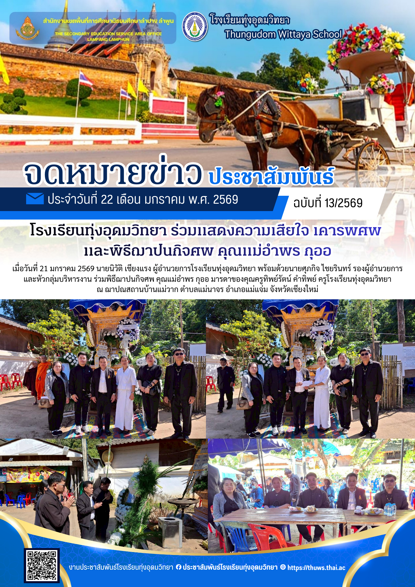 โรงเรียนทุ่งอุดมวิทยา ร่วมแสดงความเสียใจ เคารพศพ และพิธีฌาปนกิจศพ คุณแม่อำพร กุออ มารดาของคุณครูทิพย์รัตน์ คำทิพย์