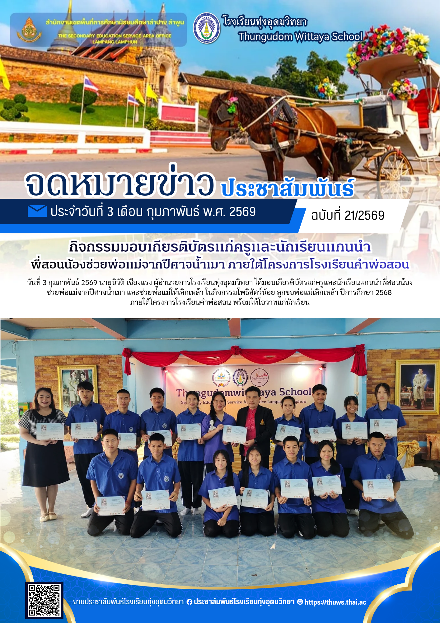 กิจกรรมมอบเกียรติบัตรแก่ครูและนักเรียนแกนนำพี่สอนน้องช่วยพ่อแม่จากปีศาจน้ำเมา ภายใต้โครงการโรงเรียนคำพ่อสอน